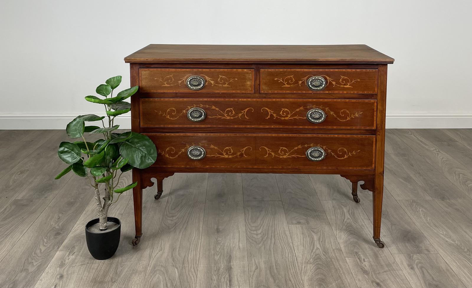 Antique 19th Century Inlaid Chest of Drawers in Mahogany