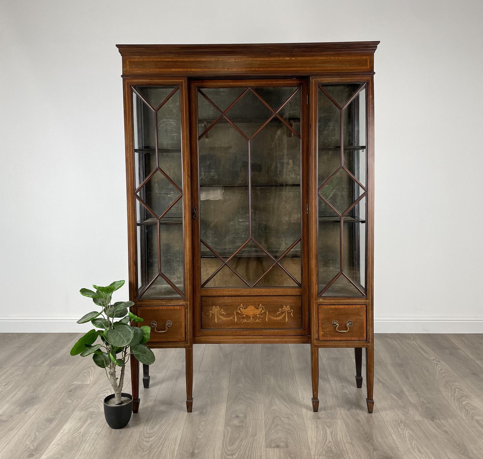 Antique 19th Century Inlaid Display Cabinet in Mahogany