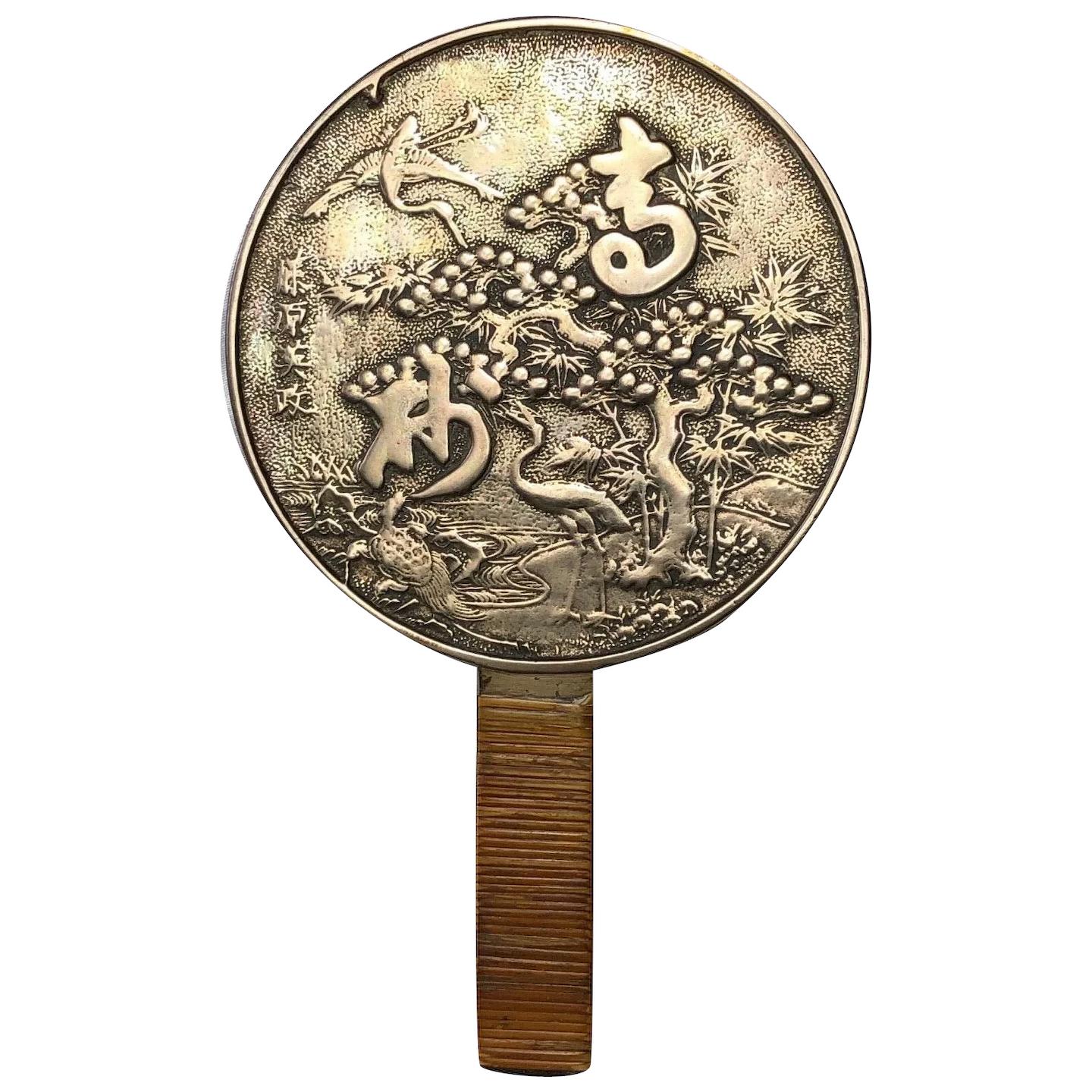 Antique 19th Century Japanese Hand Held Dragon Bronze Mirror