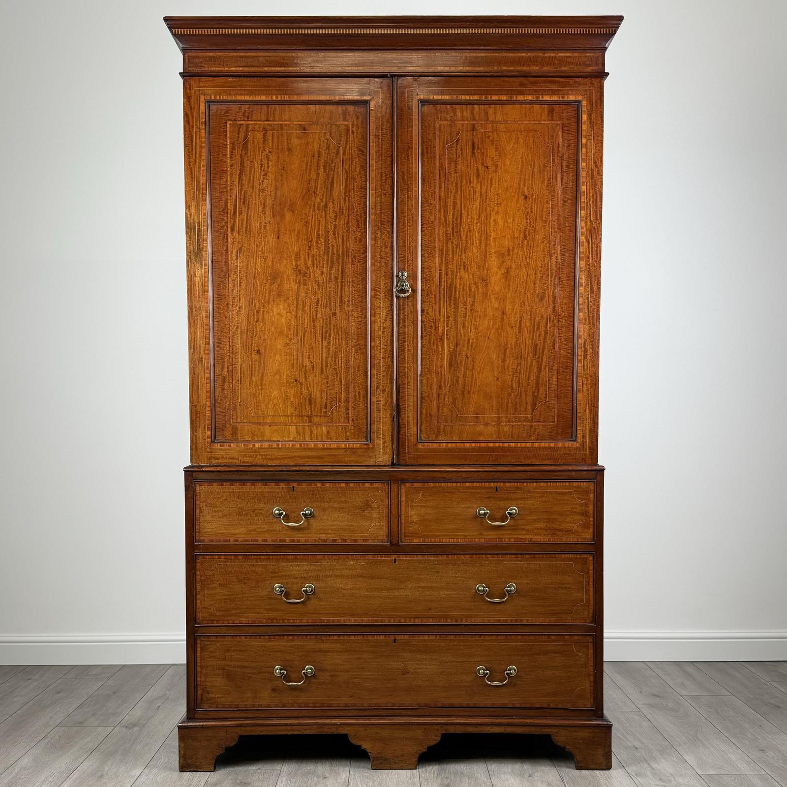 Antique 19th Century Linen Press Cupboard In Mahogany