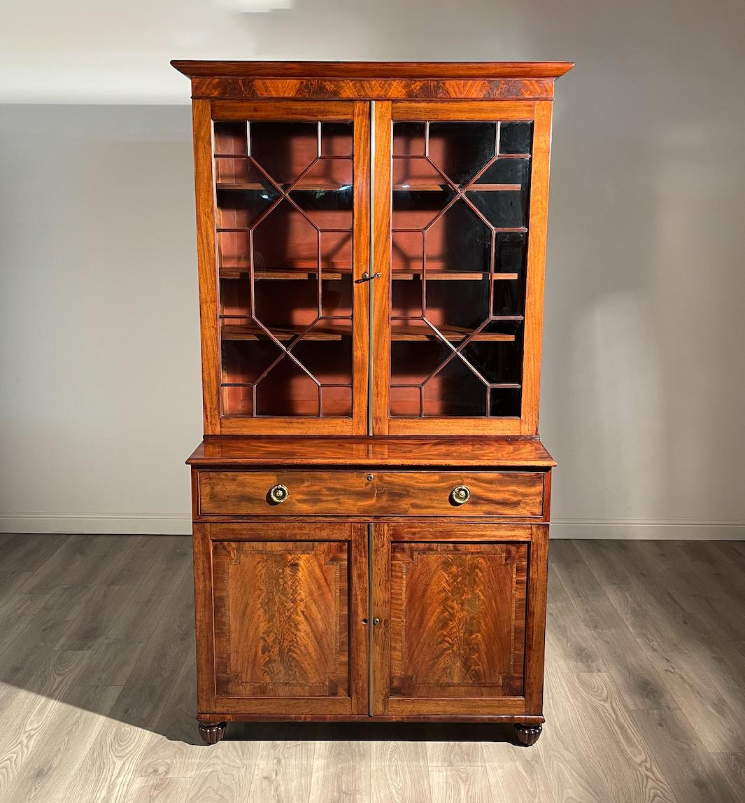 Antique 19th Century Mahogany Bookcase On Cupboard