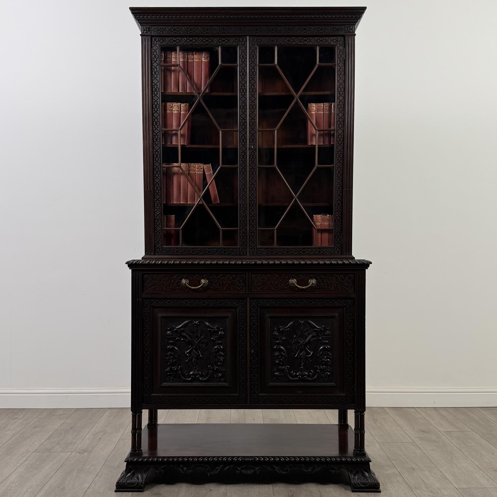 Beautifully decorated throughout, the cabinet showcases highly detailed carvings and intricate Chippendale-style motifs, reflecting immense attention to detail and exceptional craftsmanship.