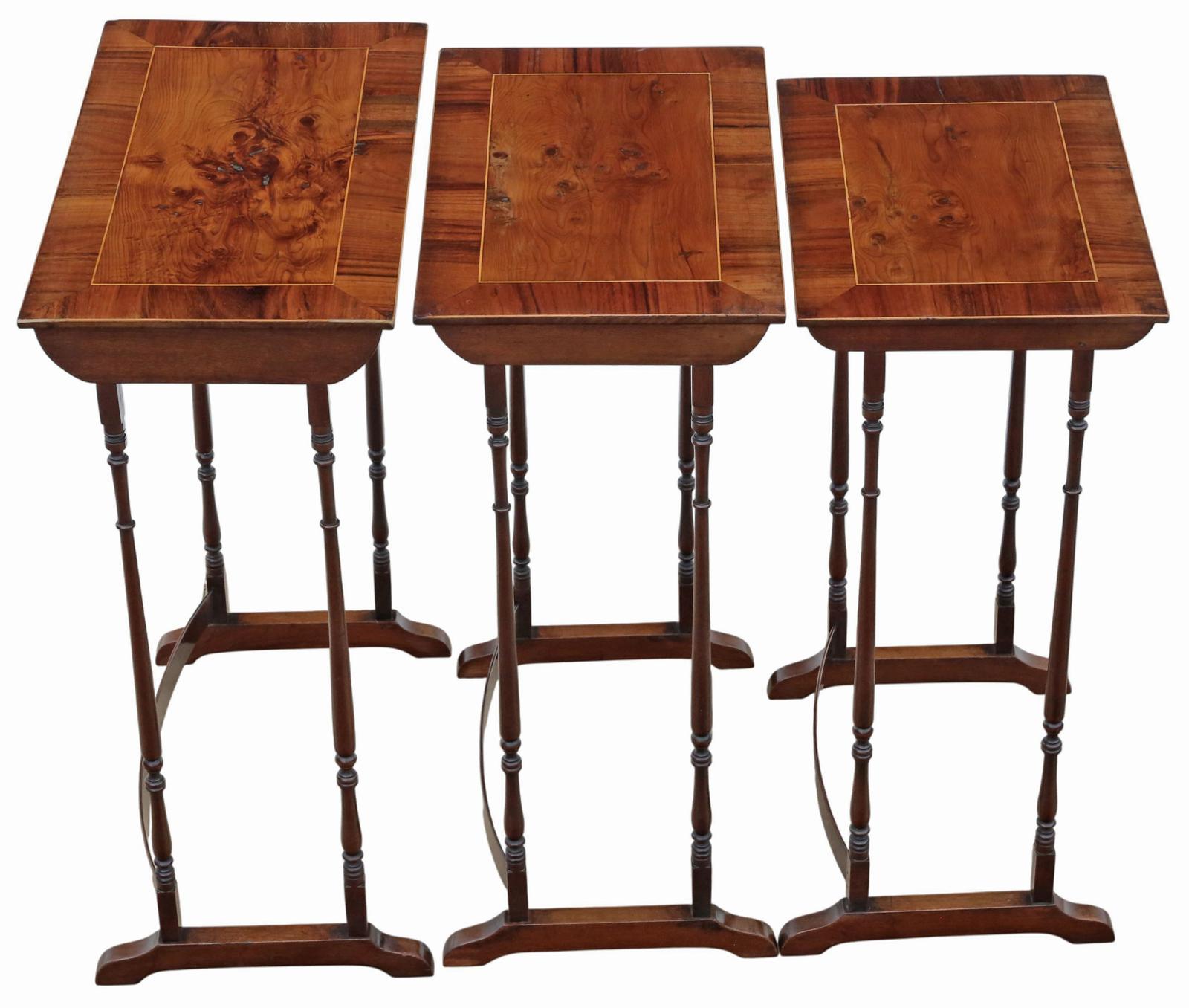 Antique 19th Century Mahogany Nest of 3 Tables - Yew Veneer Tops, Fine Quality