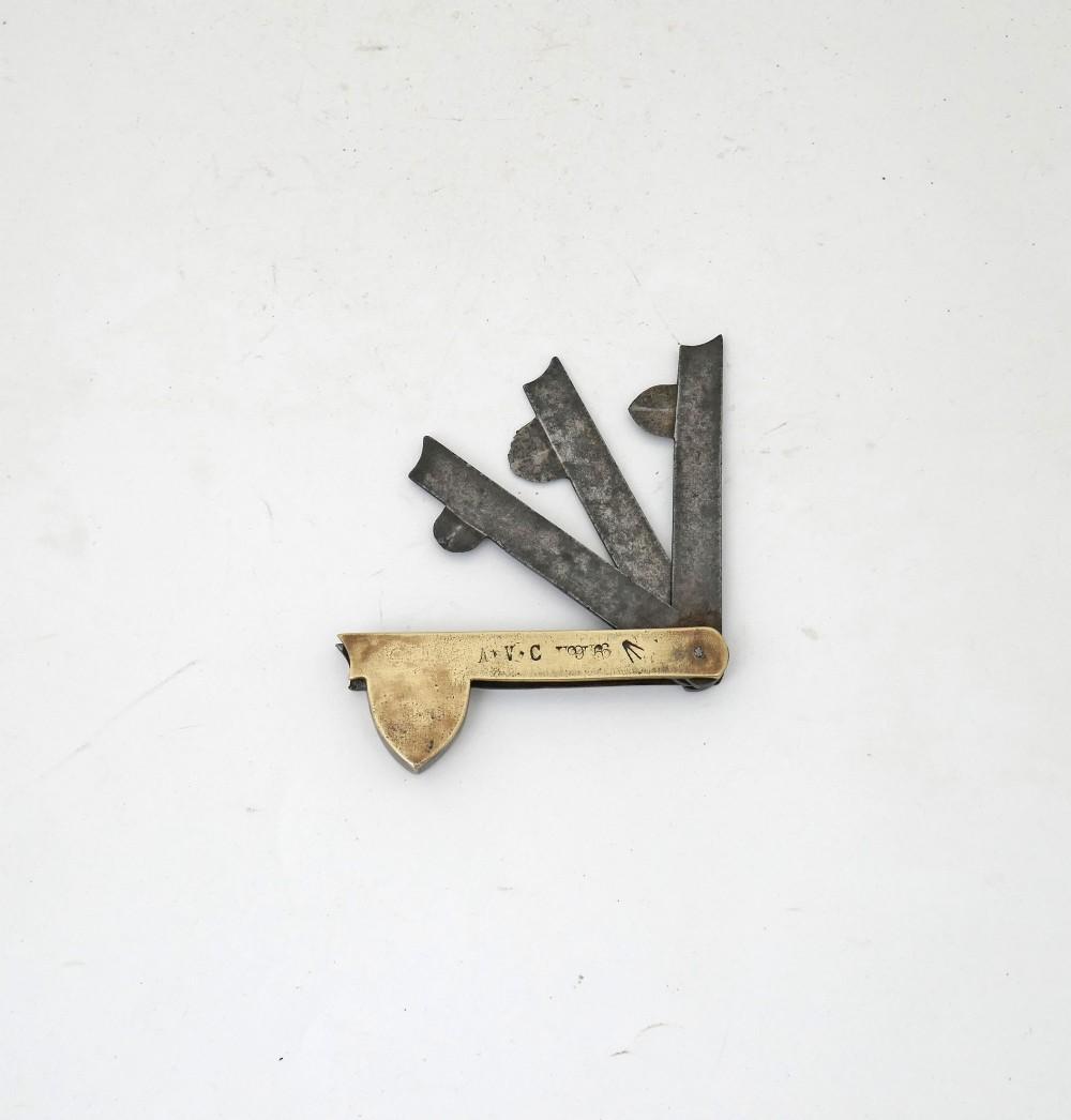 Antique 19th Century Metalware Veterinary Brass & Steel Fleam - Initialled A.V.C. 09.66
