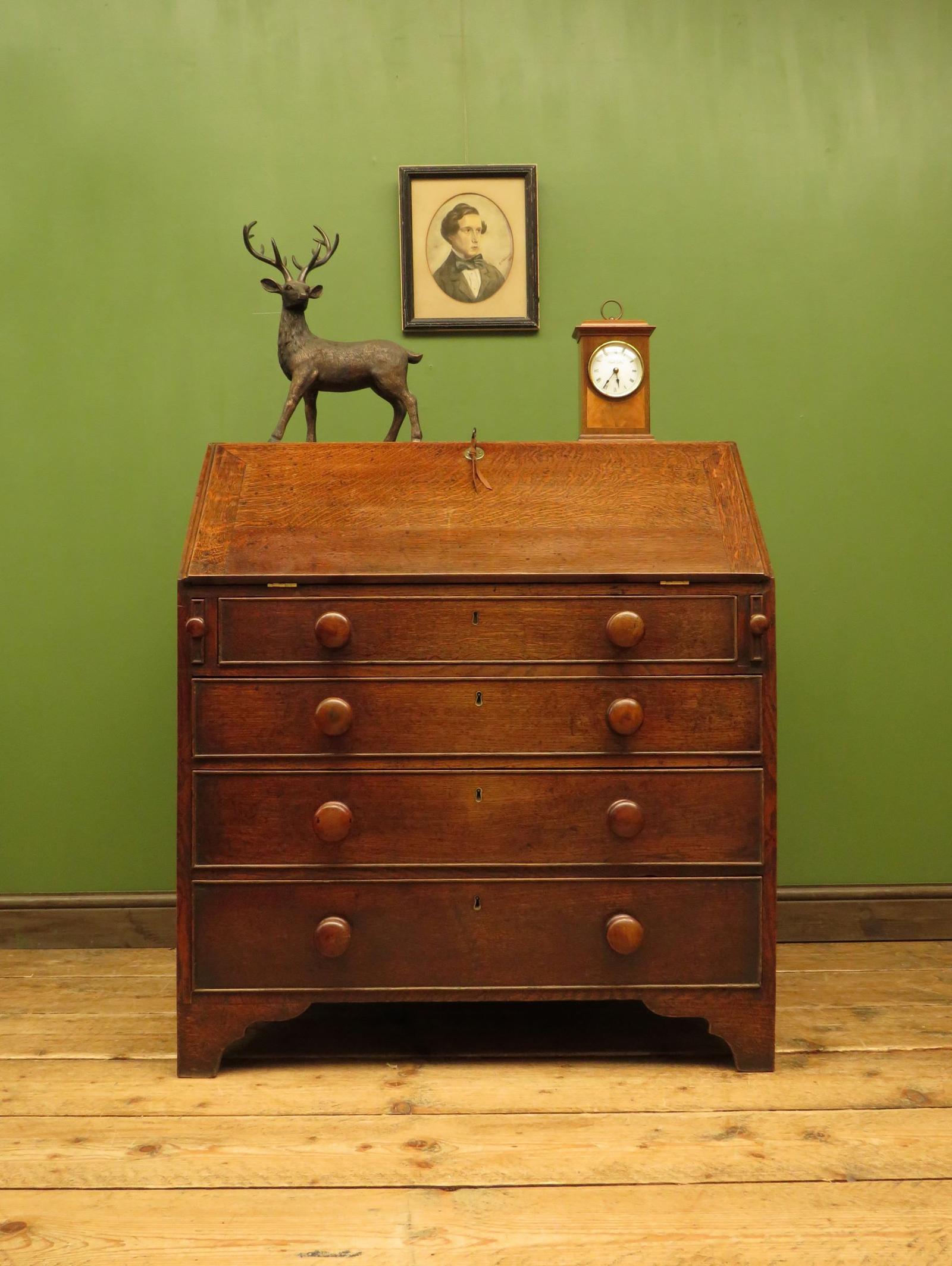 Antique 19th Century Oak Bureau with Drawers