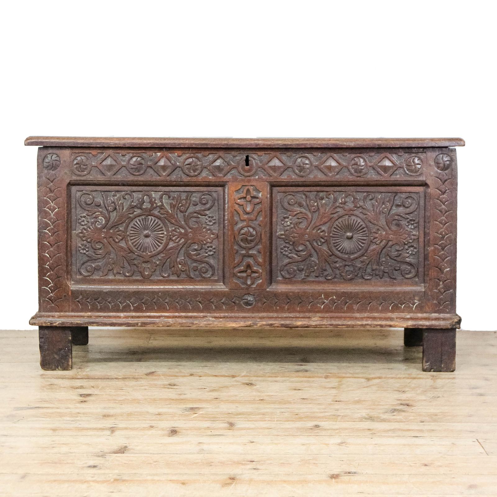 This Antique 19th Century Oak Carved Coffer is located in Mid Glamorgan, United Kingdom
