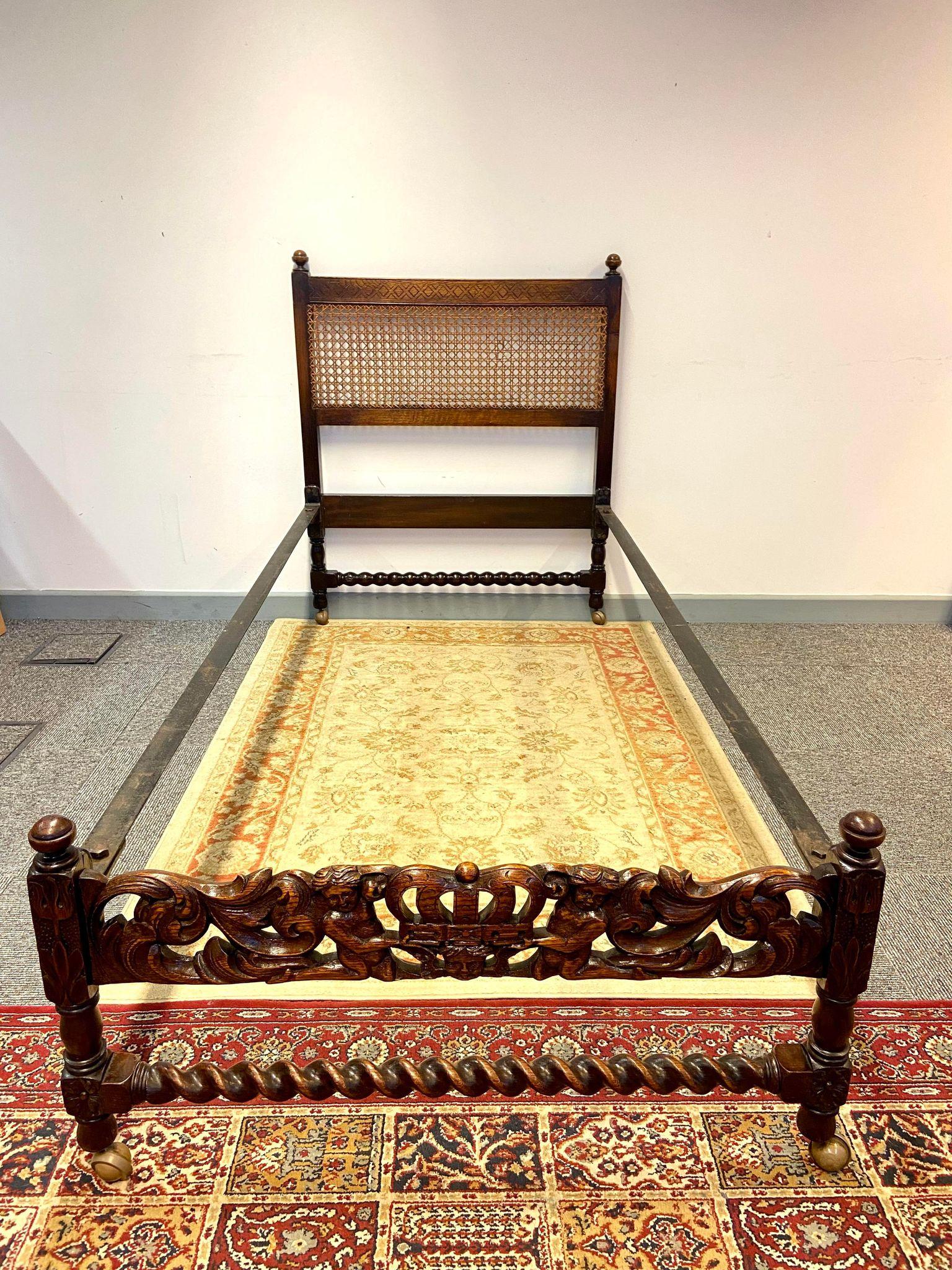 Antique 19th Century Oak Single Bed - Carved Details - Made in England