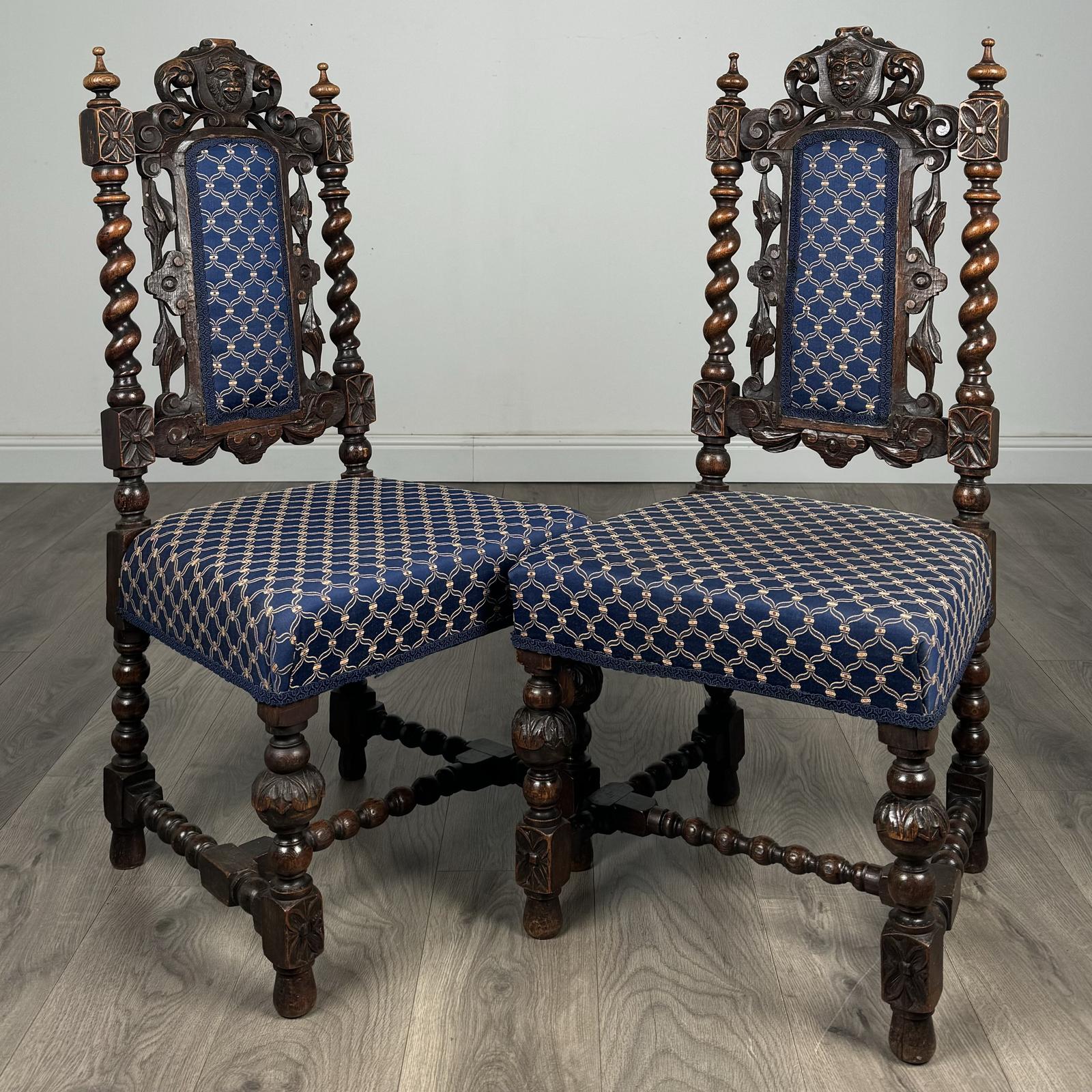 Antique 19th Century Pair of Carved Hall Chairs in Oak