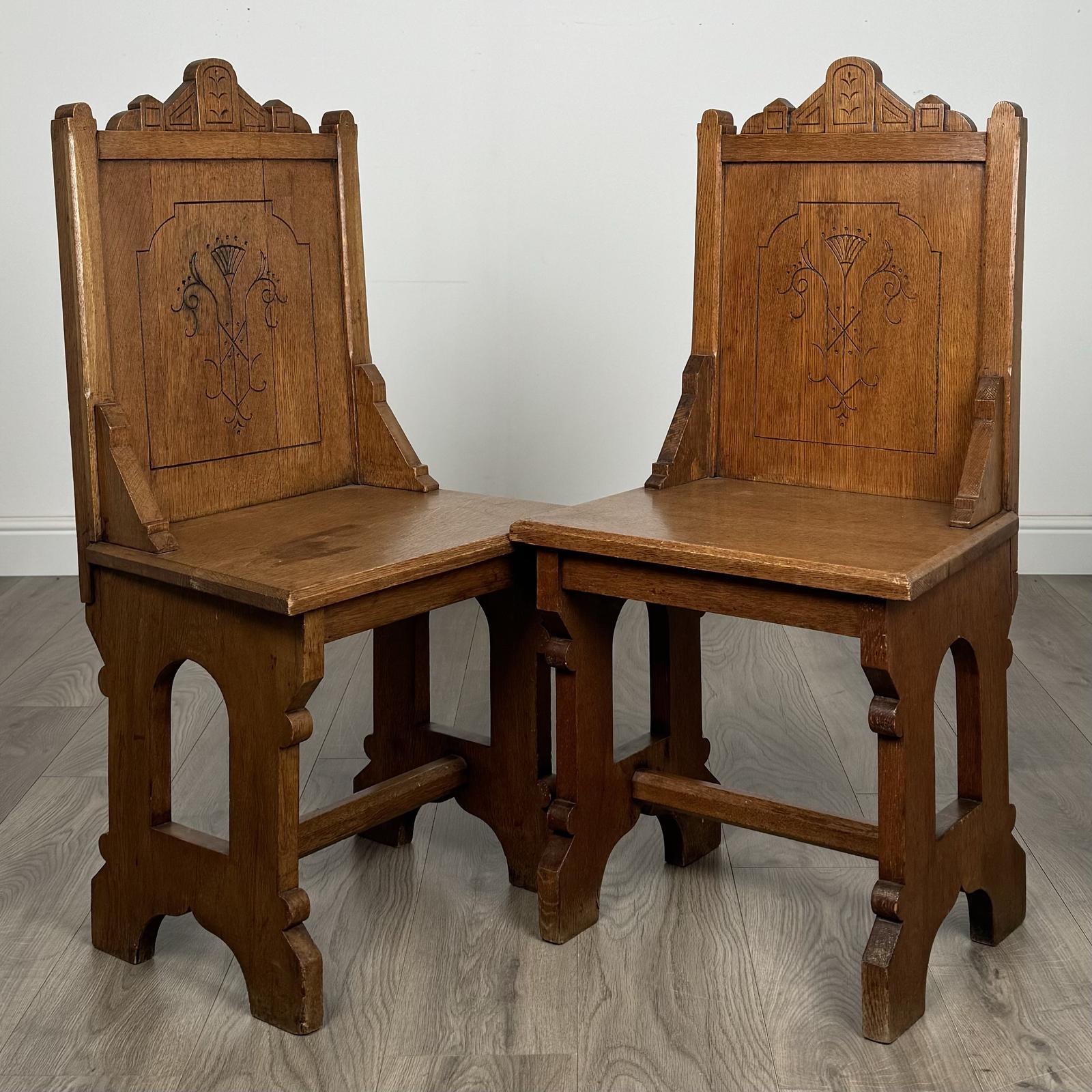 Antique 19th Century Pair of Gothic Hall Chair’s in Oak