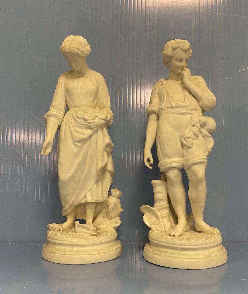 Antique 19th Century Pair of Parian Figures