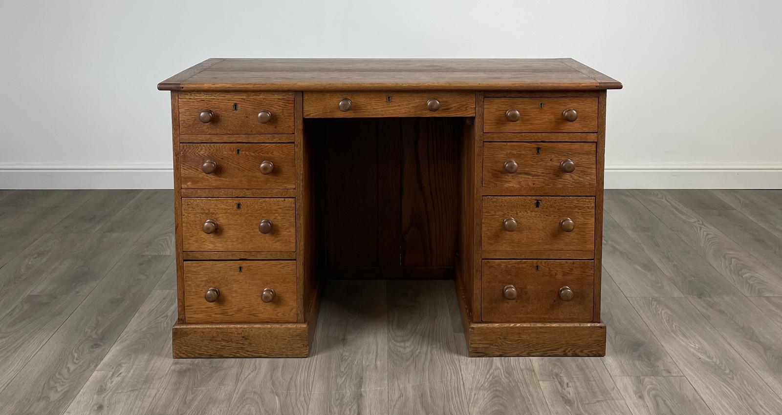Antique 19th Century Pedestal Desk in Oak (1 of 10)