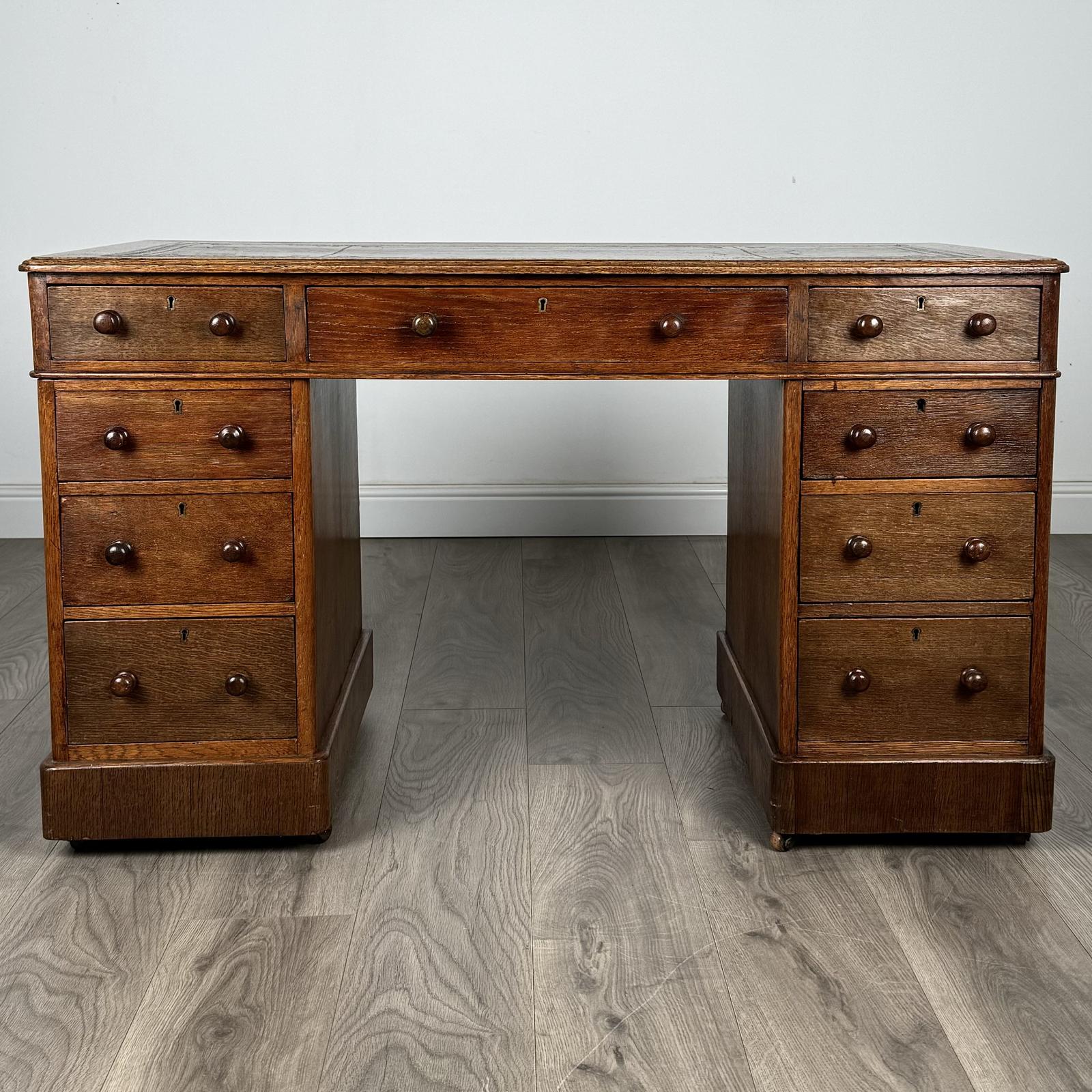 Antique 19th Century Pedestal Desk in Oak