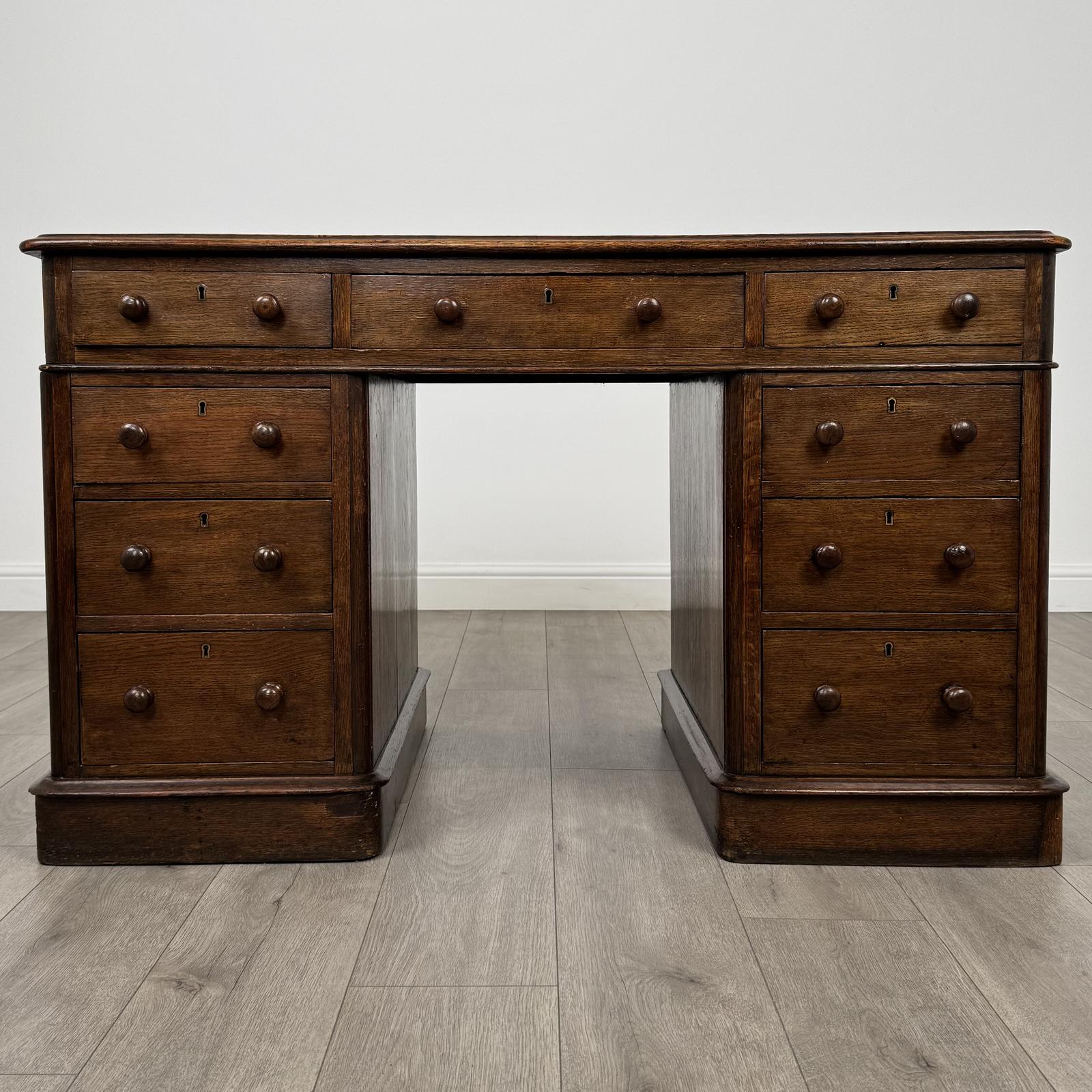 Antique 19th Century Pedestal Desk In Oak (1 of 10)