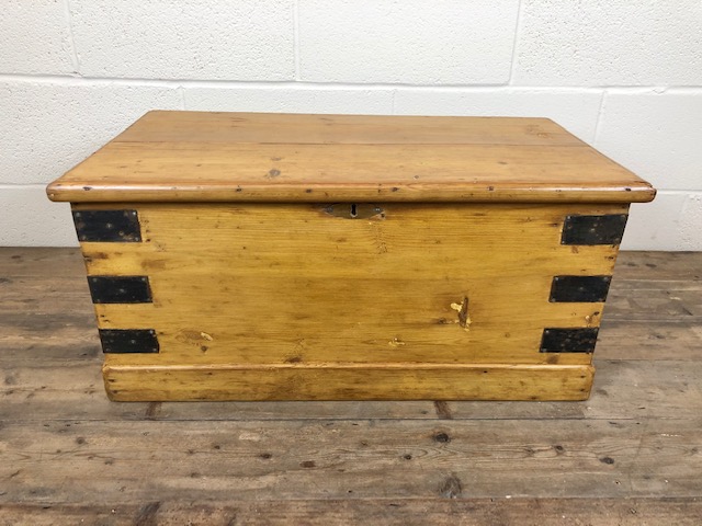Antique 19th Century Pine Metal Bound Trunk (1 of 1)