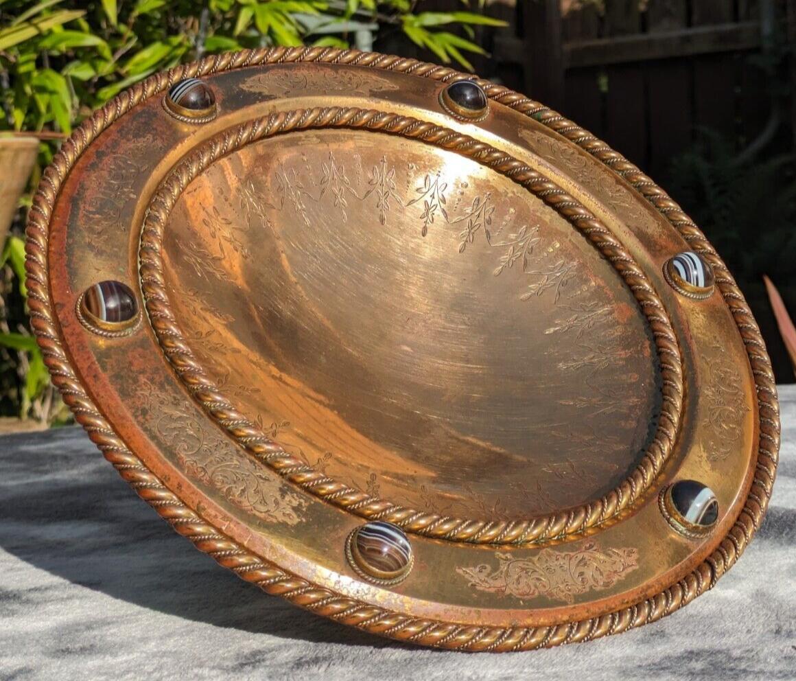 Antique 19th Century Scottish Arts Crafts Agate Cabochon Gilt Bronze Tazza Bowl