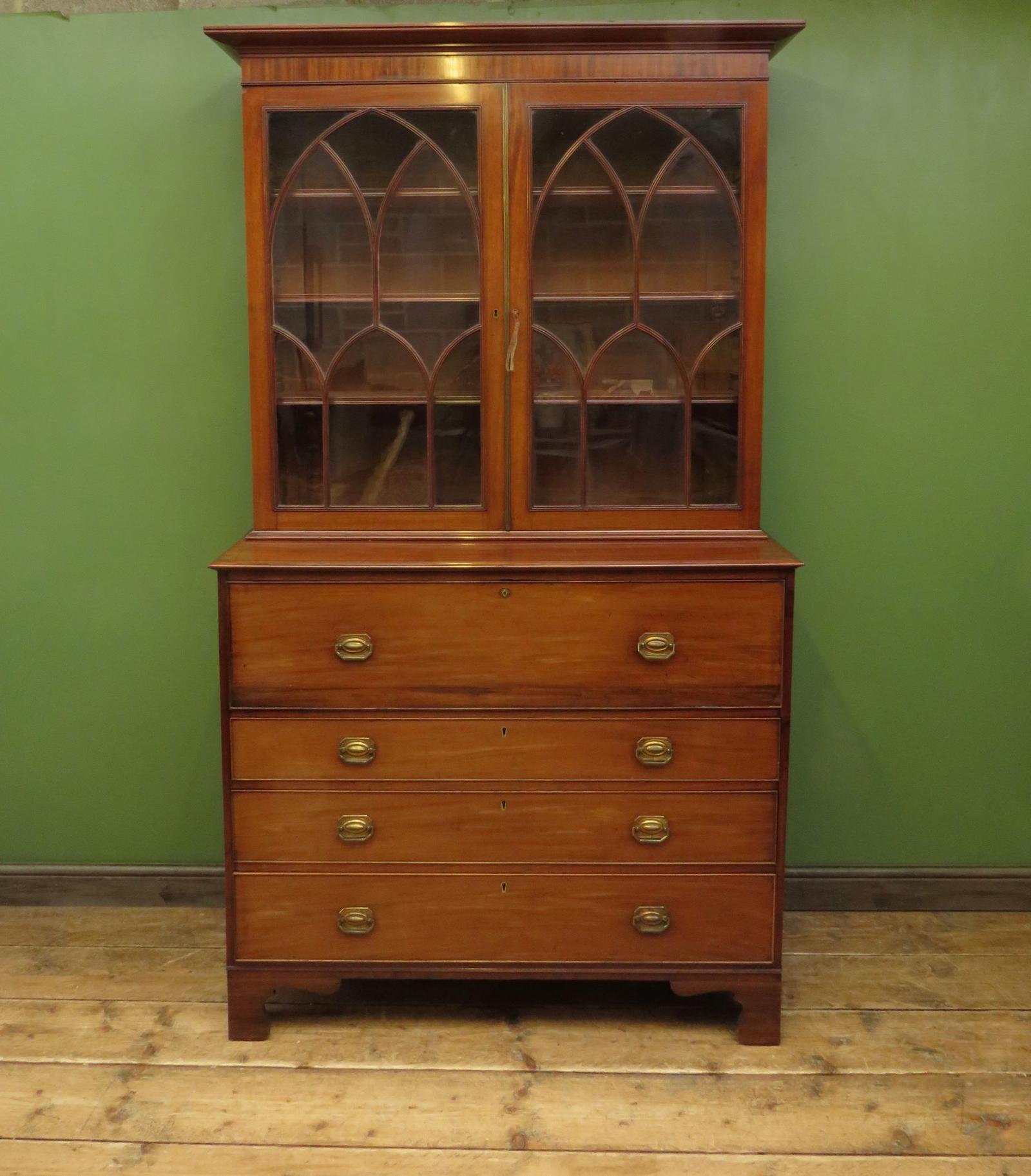 Antique 19th Century Secretaire Bookcase with Glazed Top