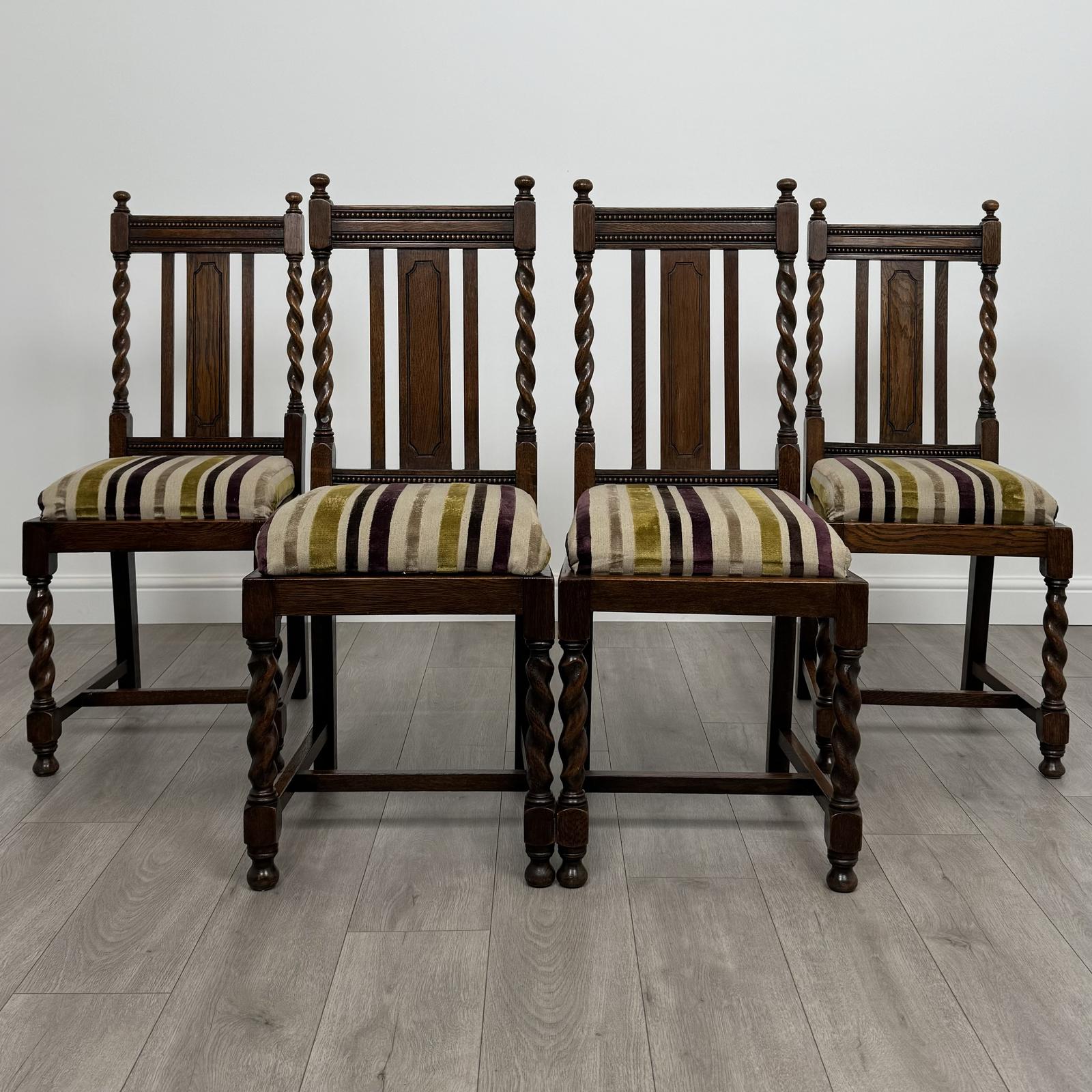 Antique 19th Century Set Of 4 Barley Twist Dining Chairs