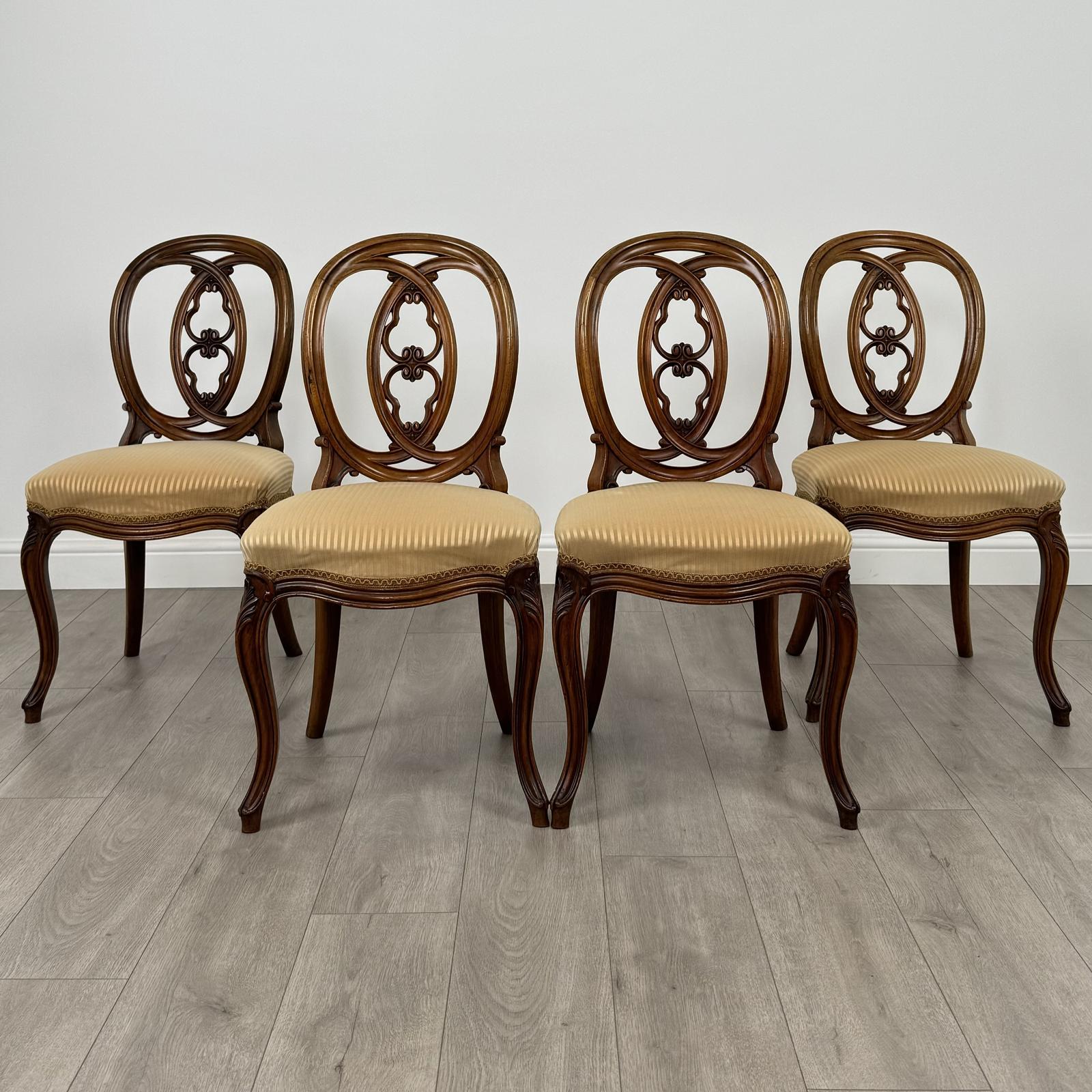 Antique 19th Century Set Of 4 Walnut Dining Chairs