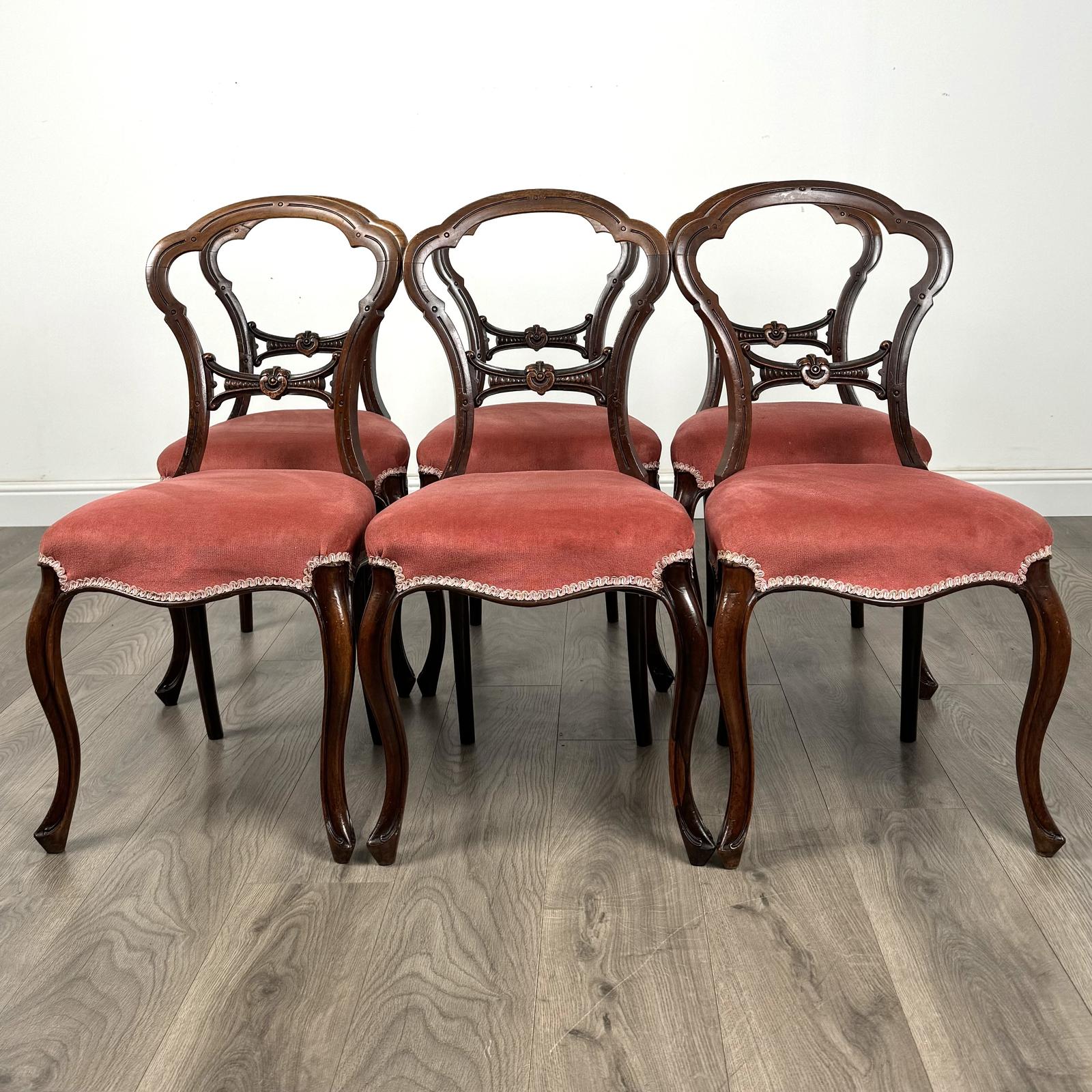 Antique 19th Century Set of 6 Balloon Back Dining Chairs in Mahogany
