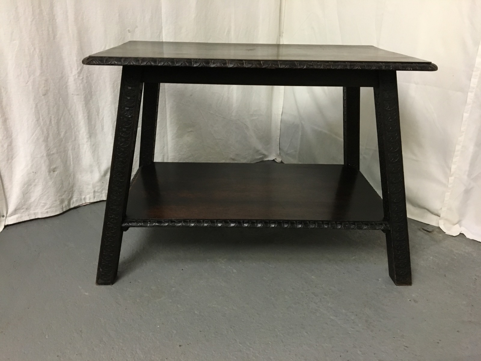 Antique 19th Century Style Ebonised Carved 2 Tier Side - End Table