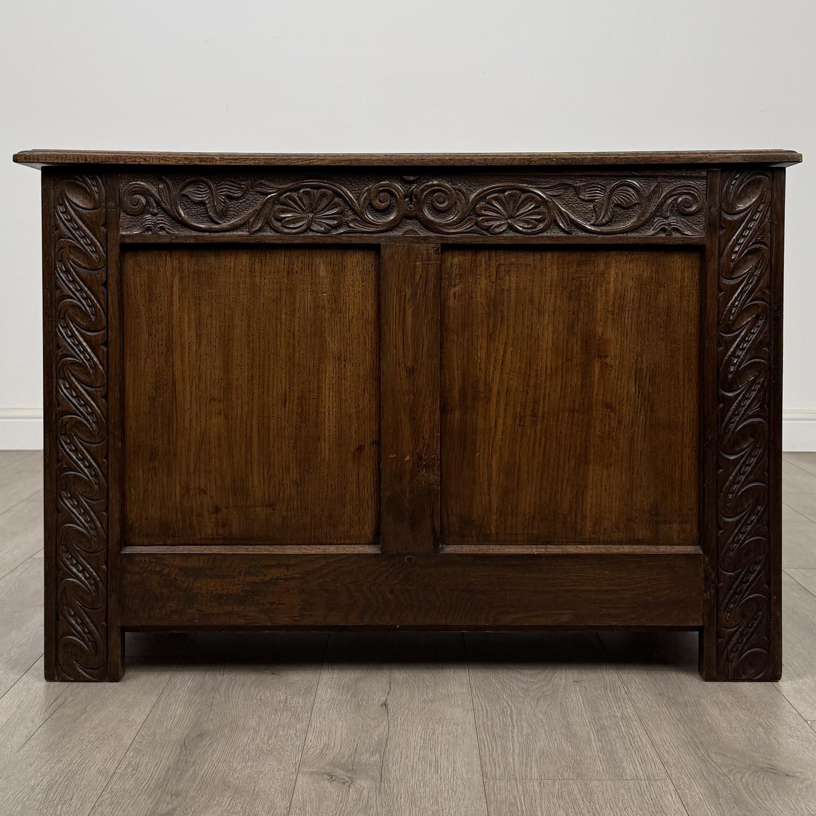 This Antique 19th Century Victorian Carved Oak Blanket Box is located in Worcestershire, United Kingdom