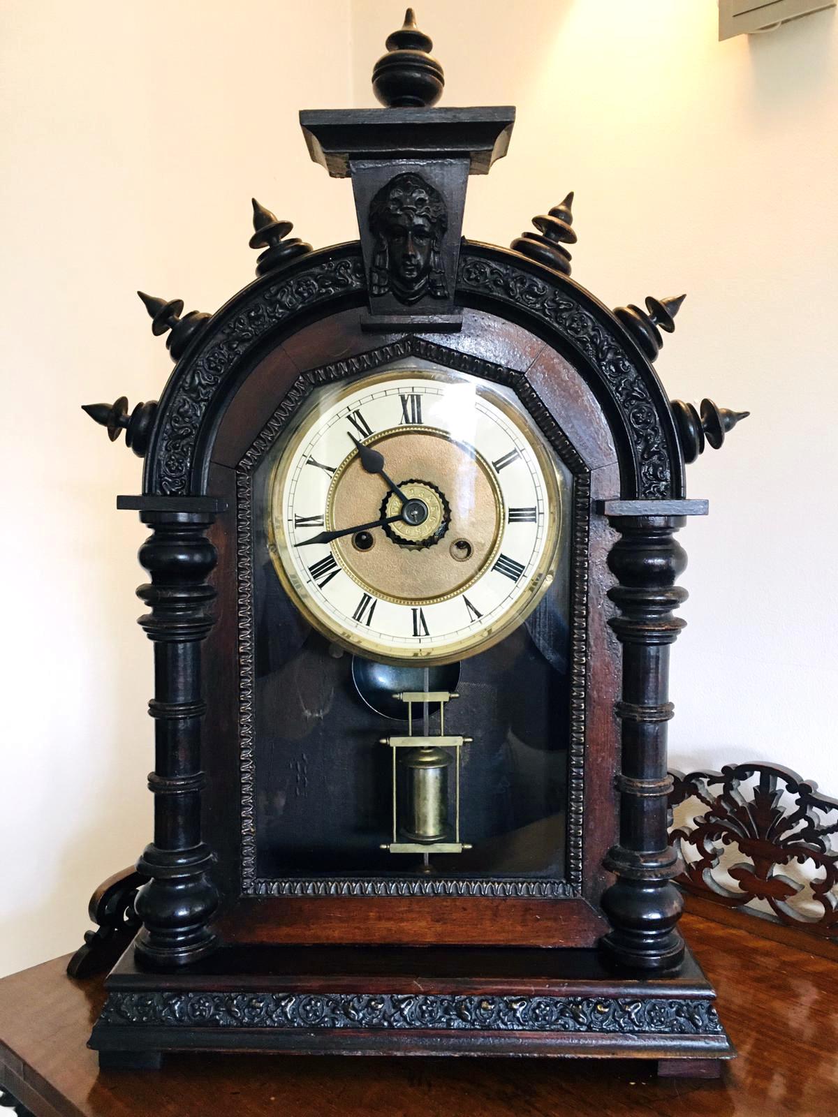 Antique 19th Century Victorian Carved Ornate Mantel Clock