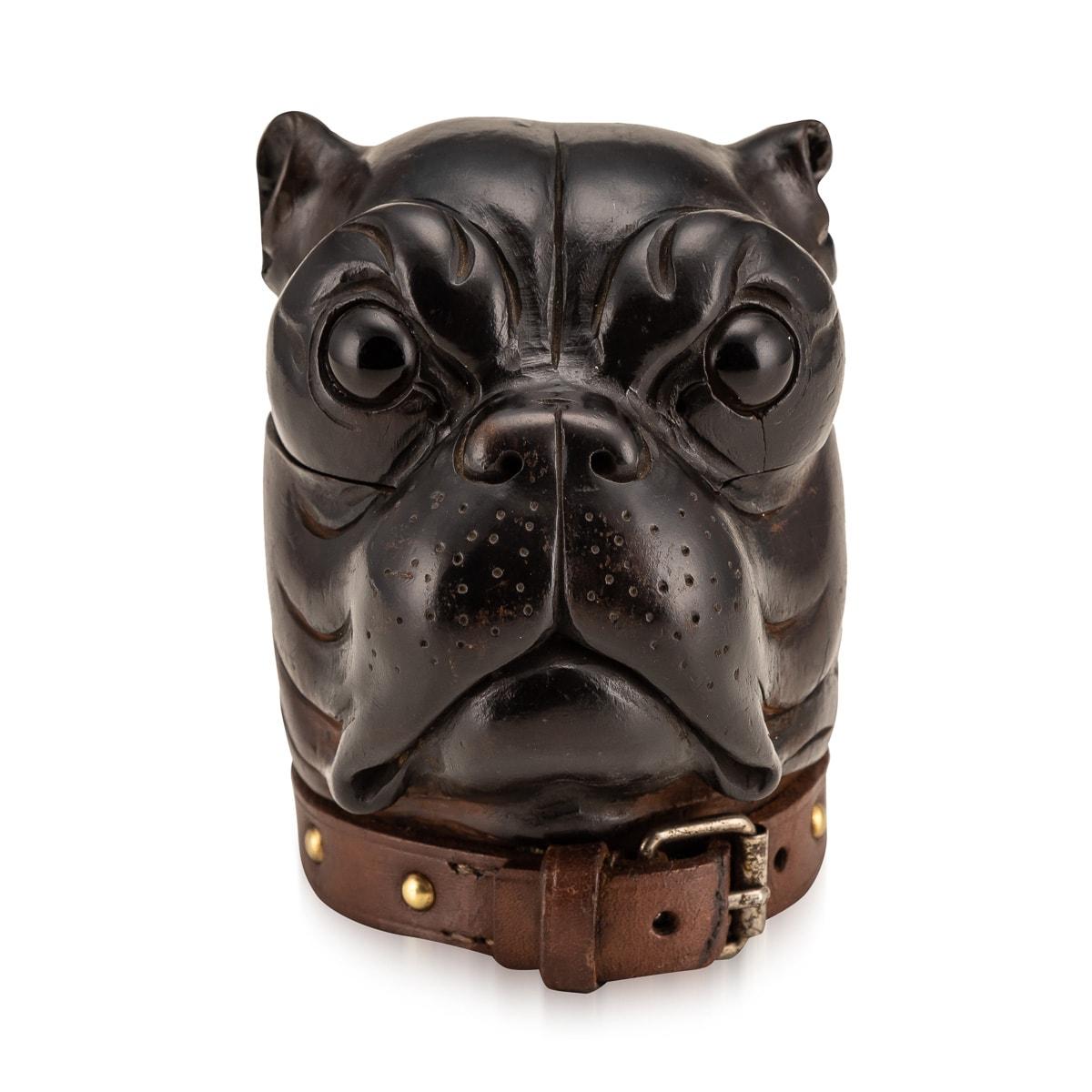 Antique 19th Century Victorian Lignum Vitae Bulldog Inkwell c.1860