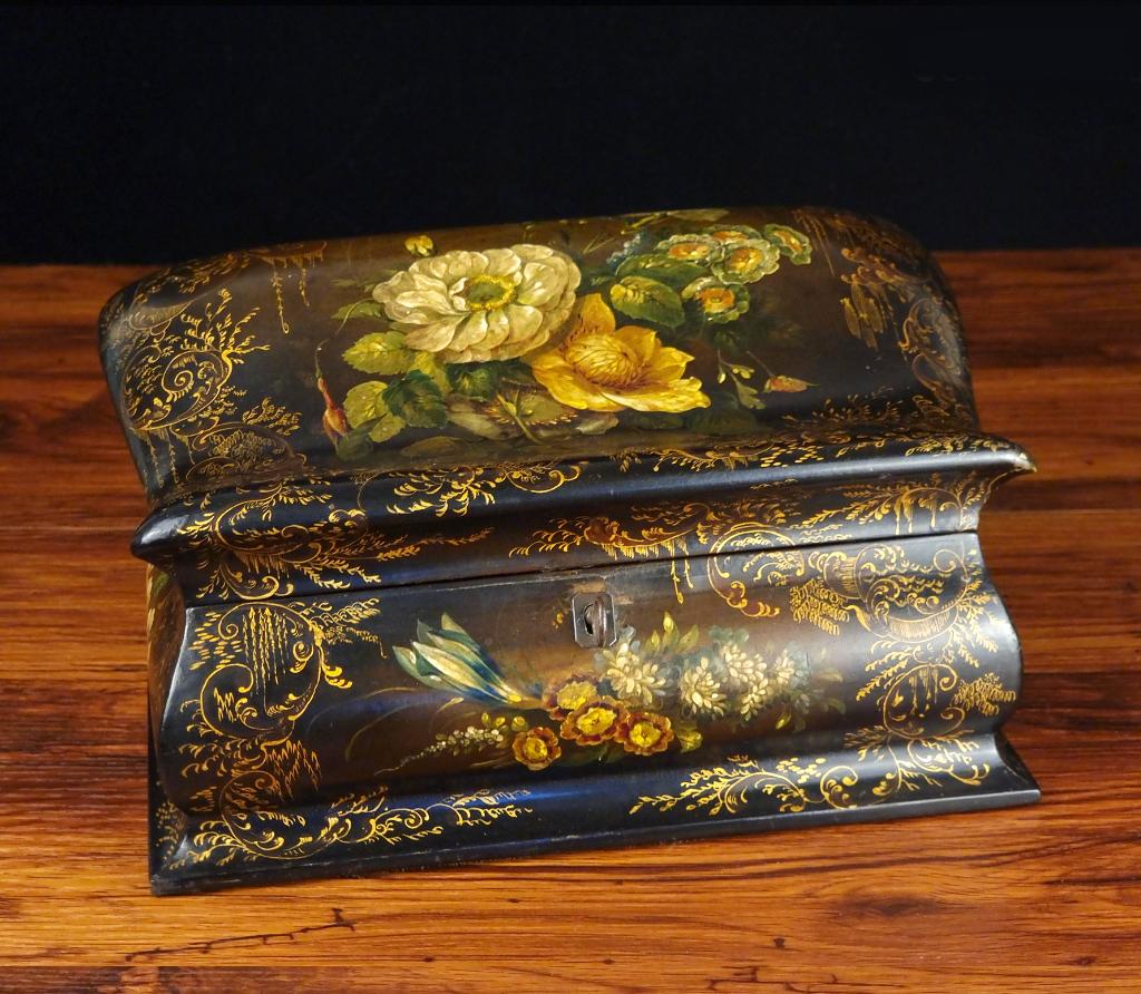 Antique 19th Century Victorian Papier Mache Stationery Box, Jewellery Storage