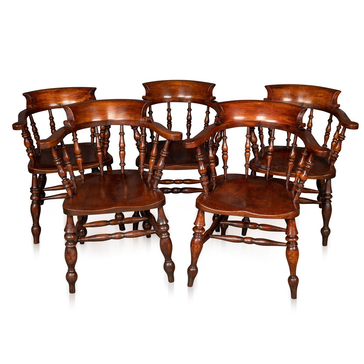 Antique 19th Century Victorian Set Of Five Captains Elm Chairs c.1870