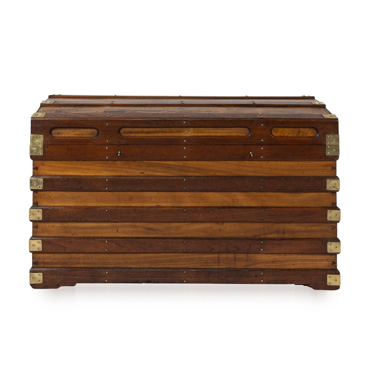 Antique 19th Century Victorian Teak & Mahogany Seamans Trunk c.1890