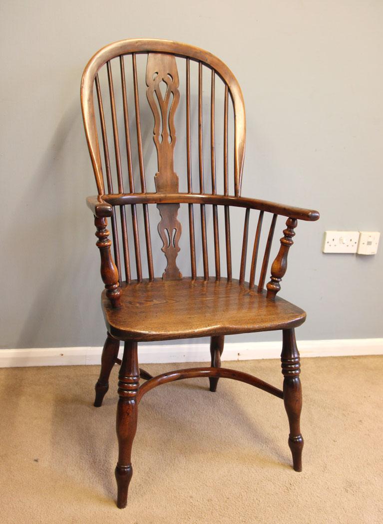 Antique 19th Century Yew Wood High Back Windsor Chair