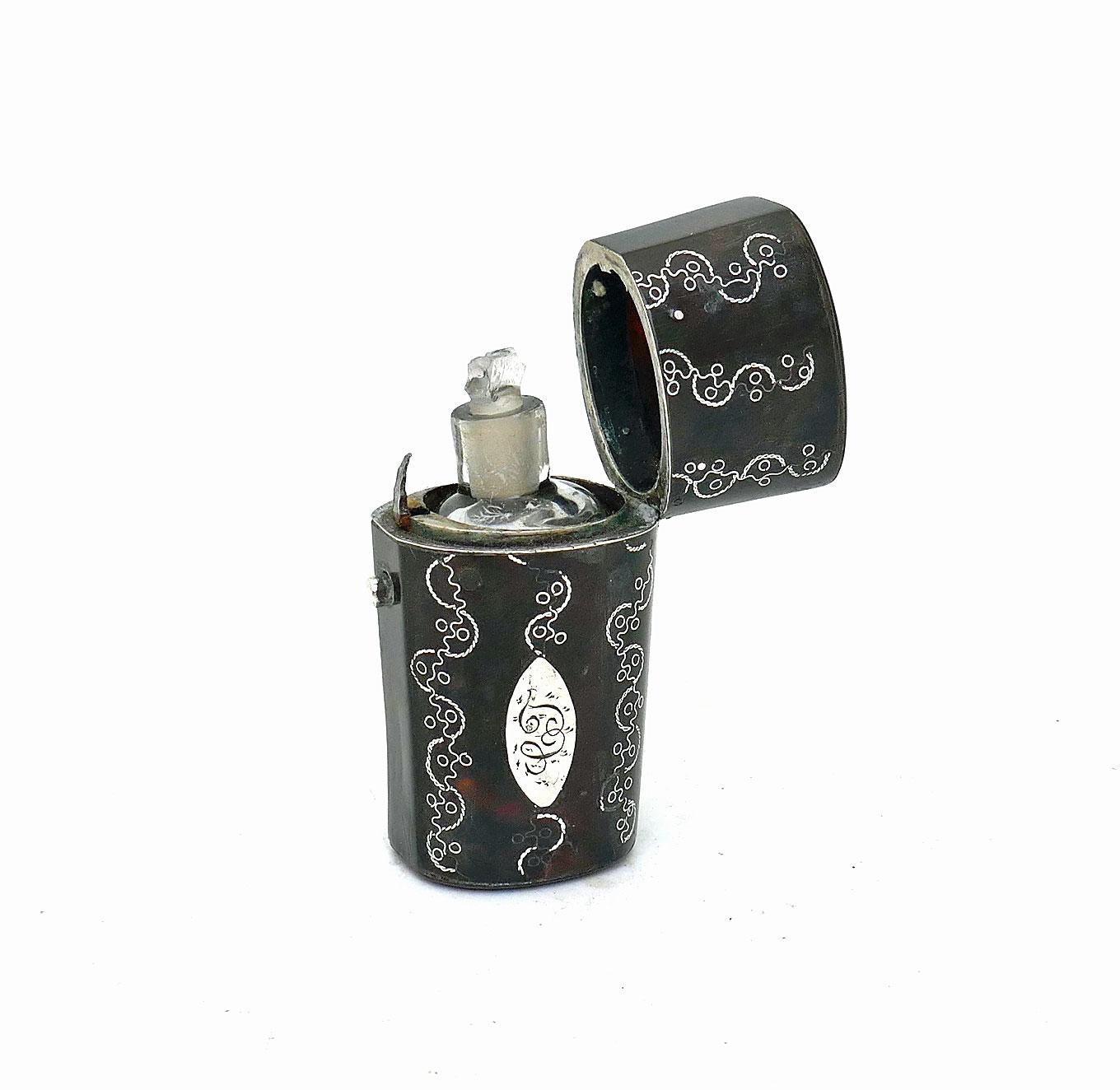Antique 19thc Regency Tortoiseshell & Silver Scent Bottle Initialled C.J.