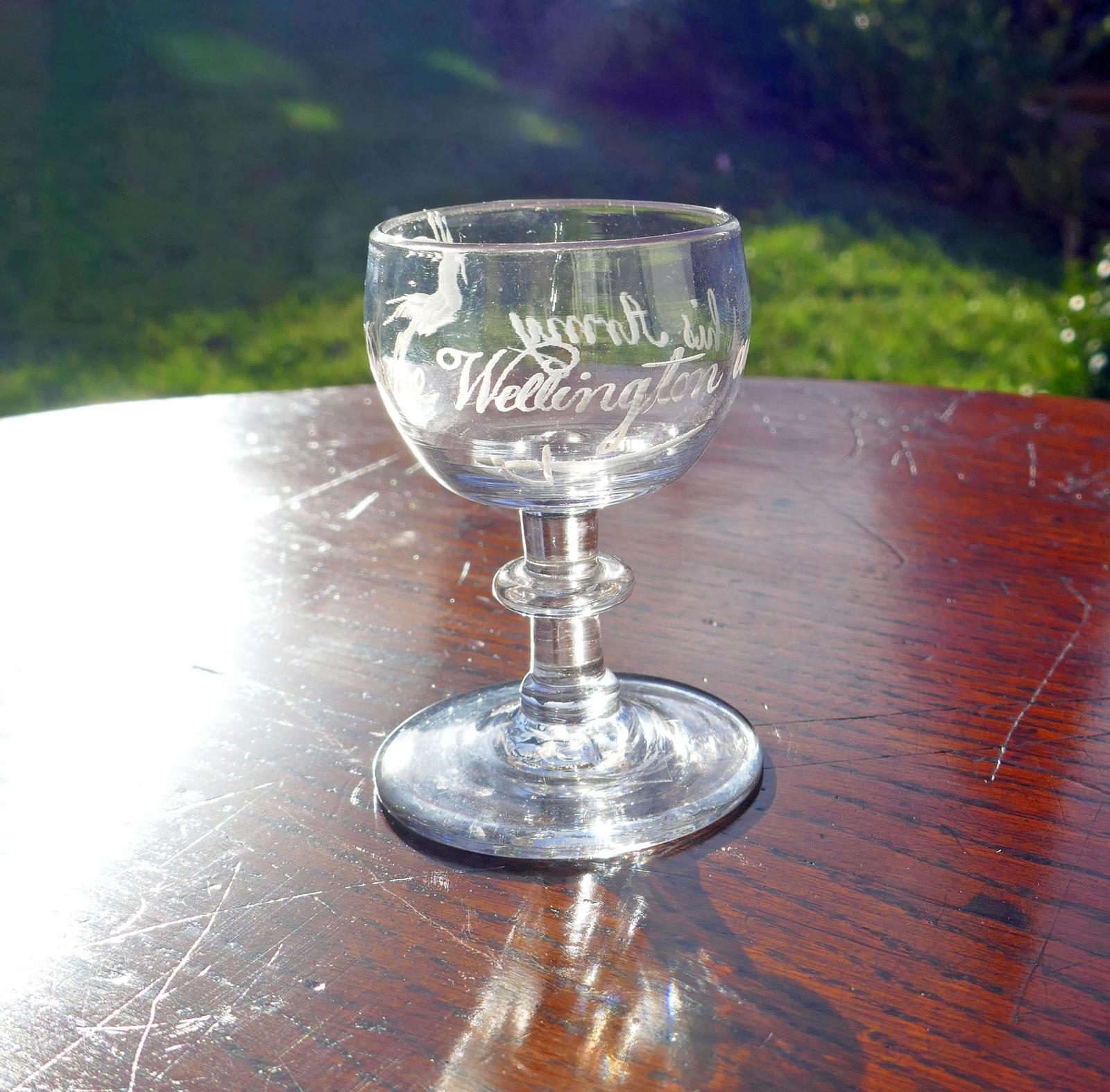 Antique 19thc Small Wine Glass Engraved Duke Wellington And His Army