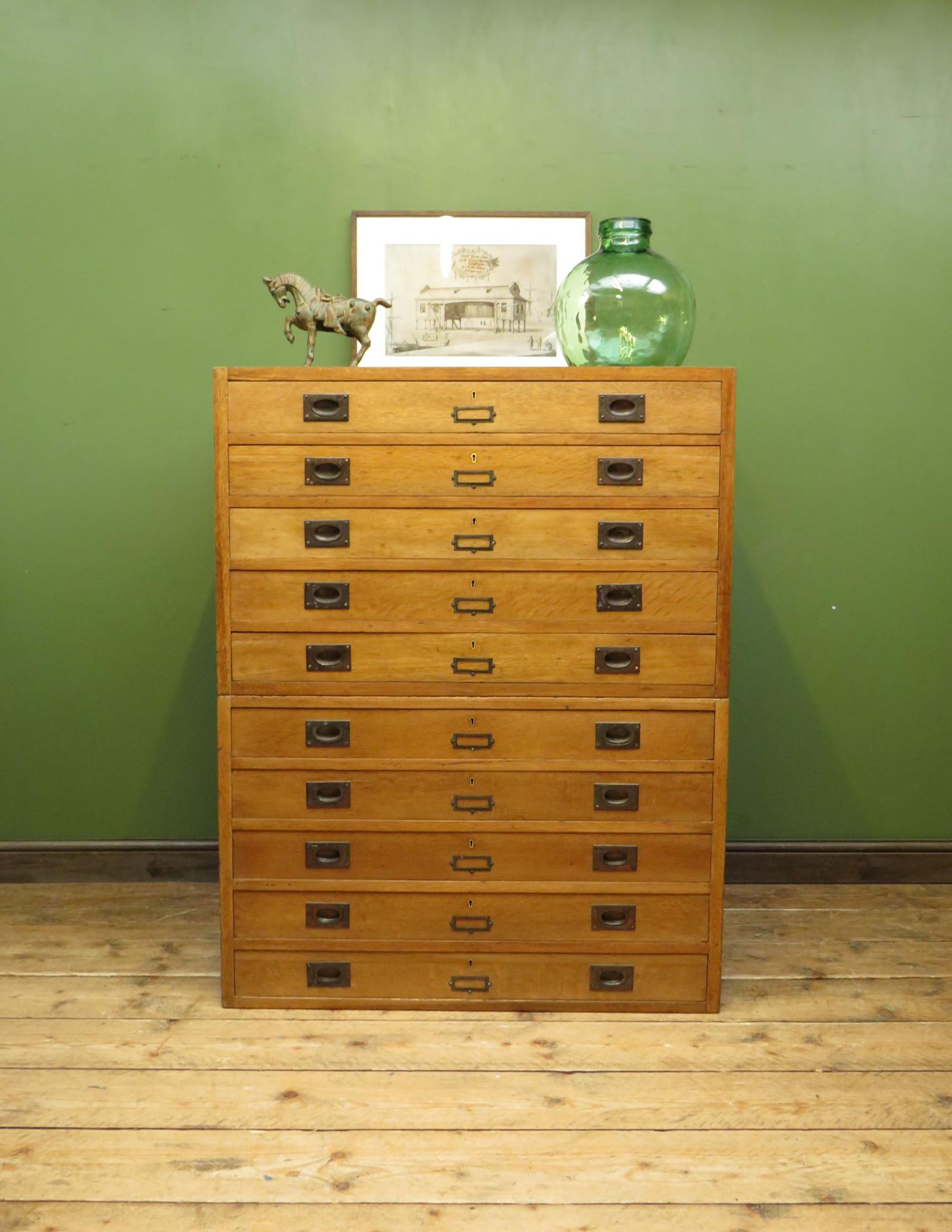 Antique 2 Part Architects Pine Plan Chest with Military Campaign Brass Handles