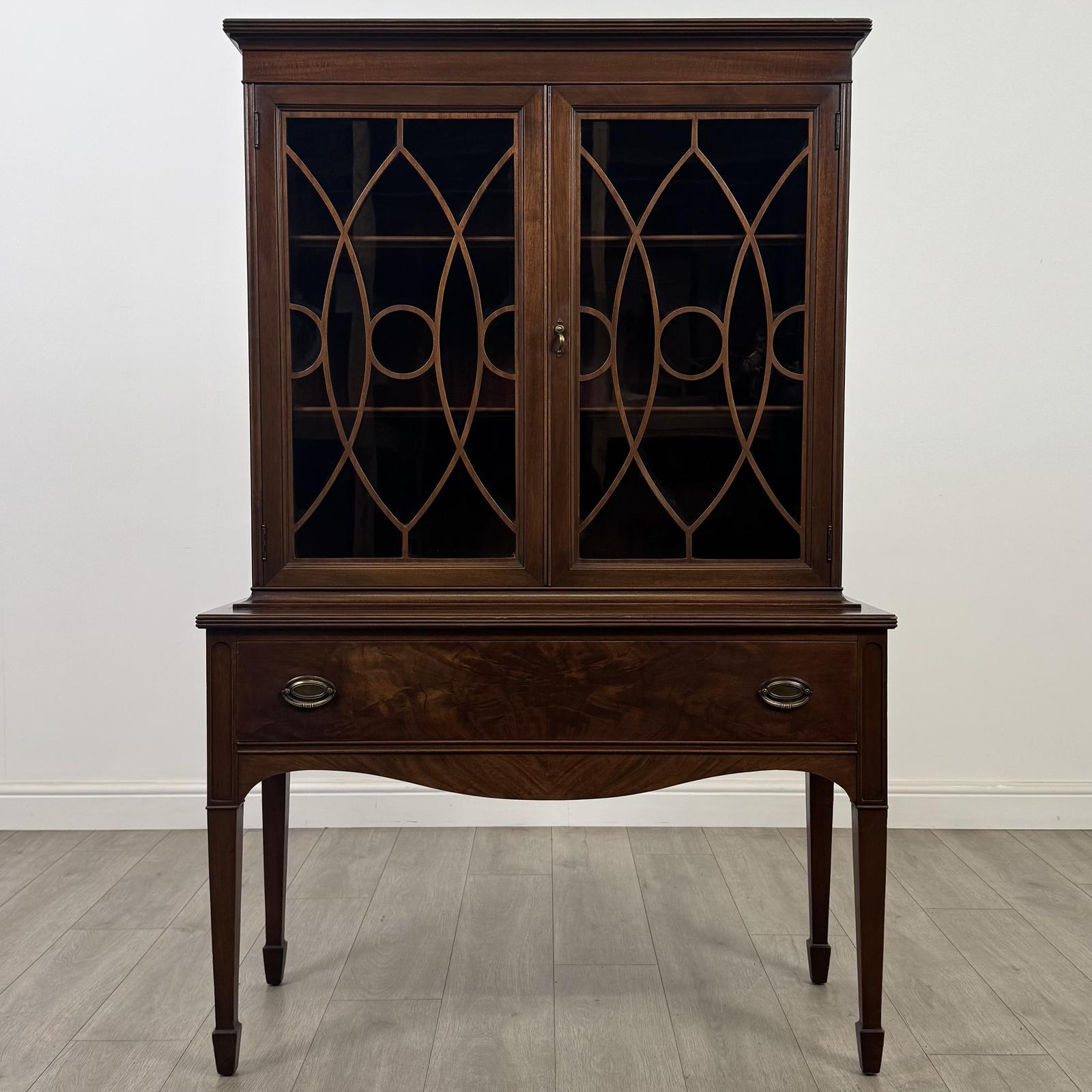 Antique 20th century American display cabinet in mahogany, a very well-made piece of good quality, showcasing fine craftsmanship and elegant design.