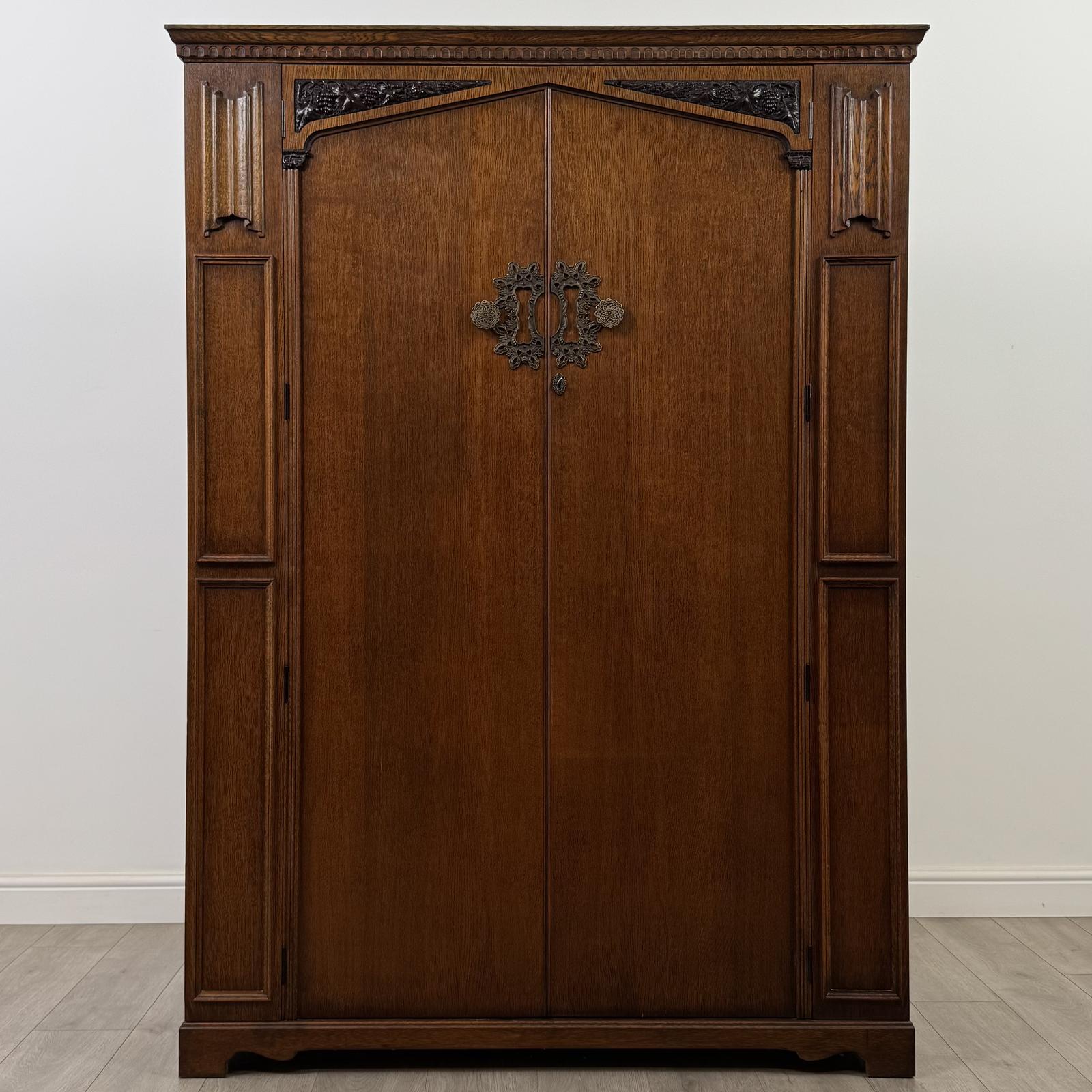 Antique 20th Century Art Deco Oak Wardrobe By Wrighton