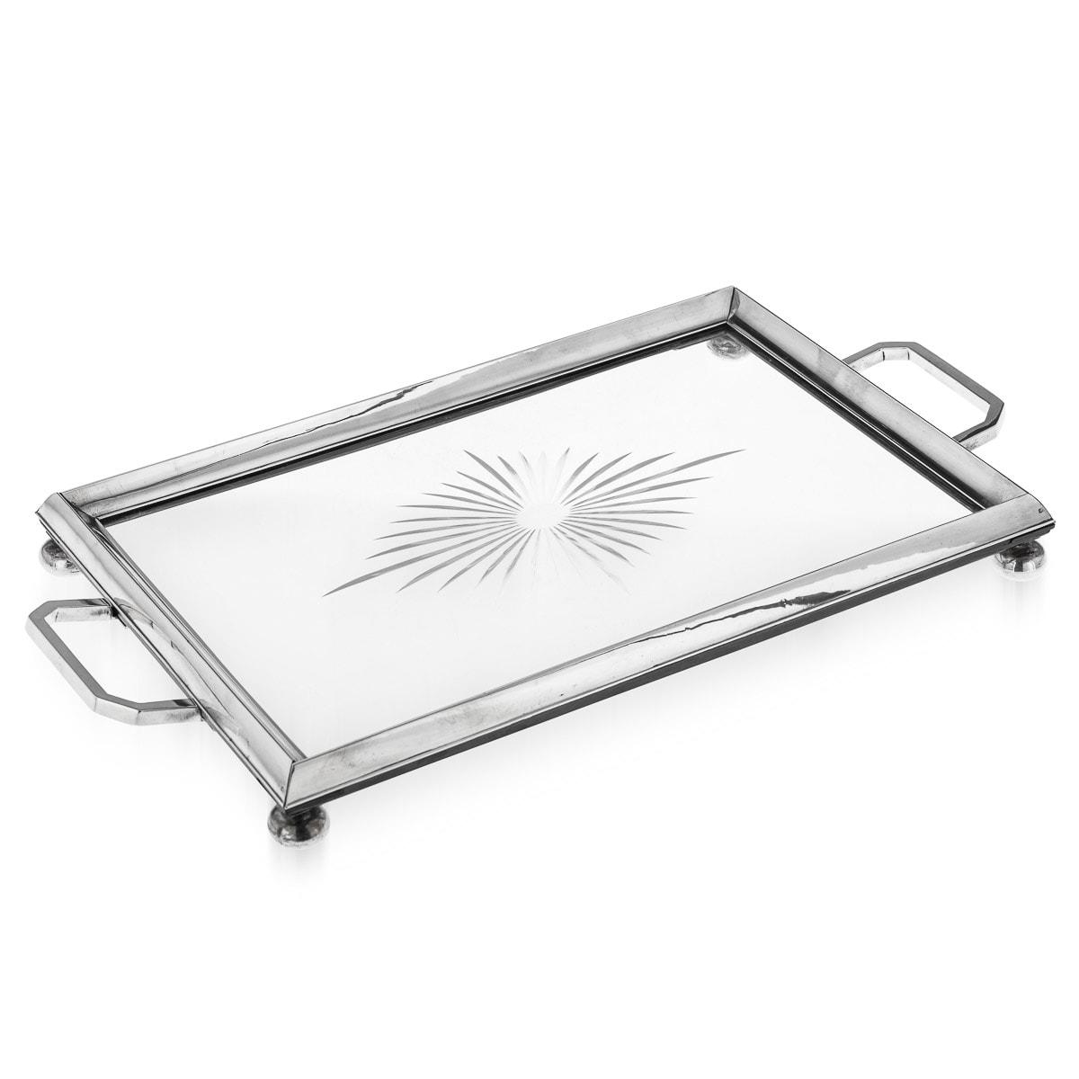 Antique 20th Century Art Deco Solid Silver & Cut Glass Cocktail Tray c.1924