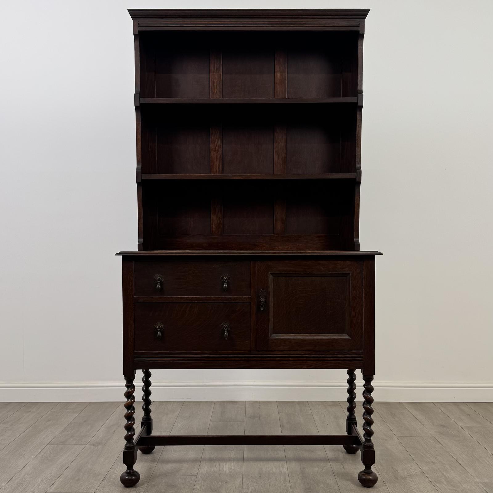 Antique 20th century Barley Twist Welsh dresser in oak, a very well-made piece of good quality, showcasing fine craftsmanship and traditional design.