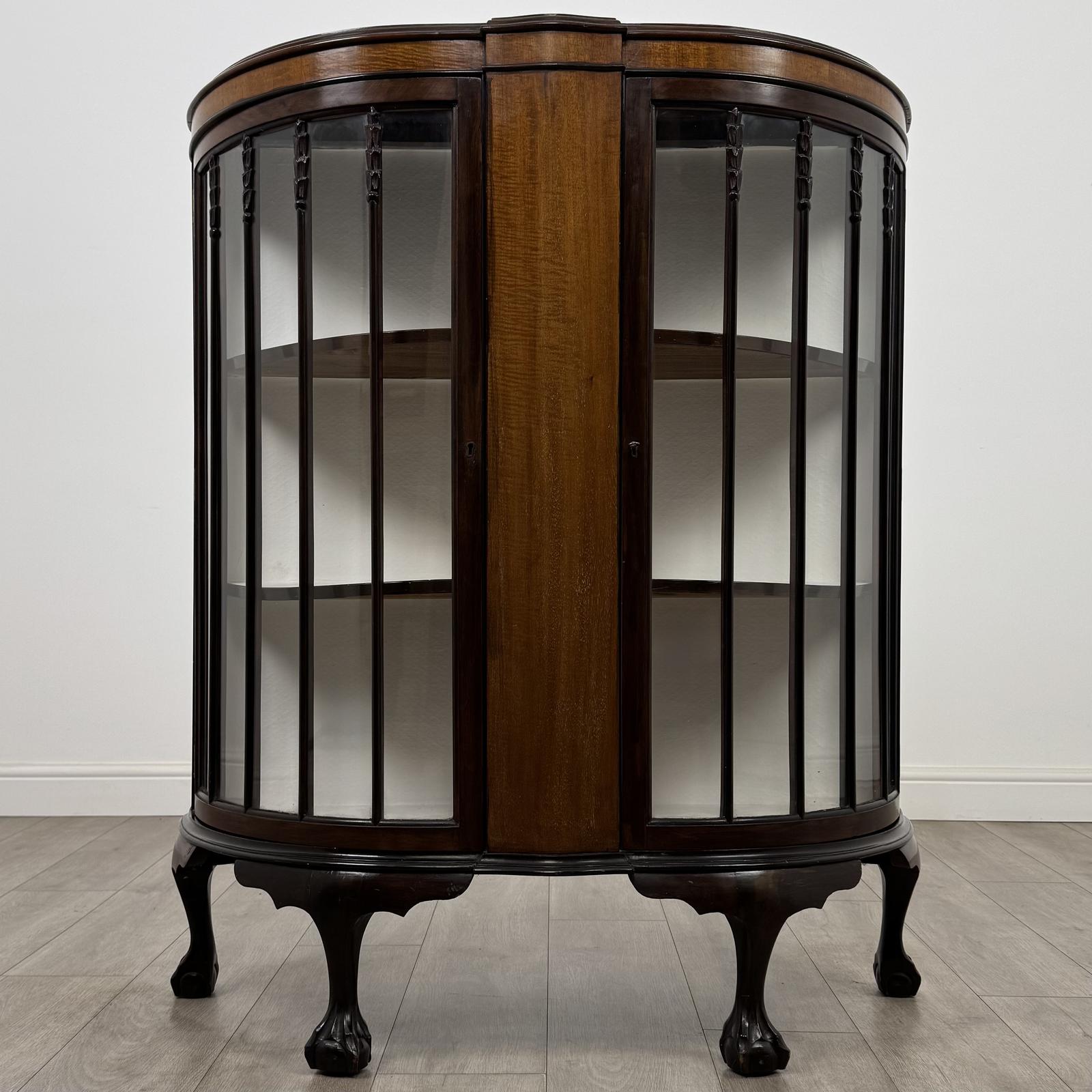 Antique 20th Century Bow Front Display Cabinet In Mahogany