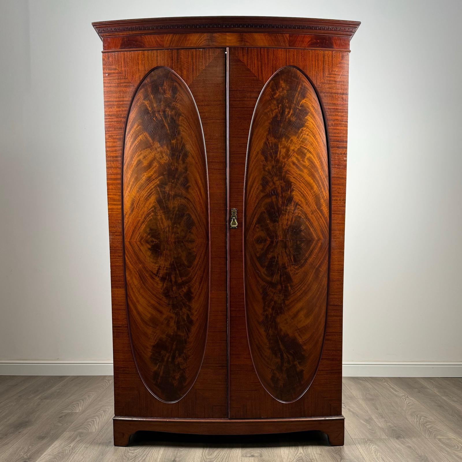 Antique 20th Century Bow Fronted Wardrobe in Mahogany