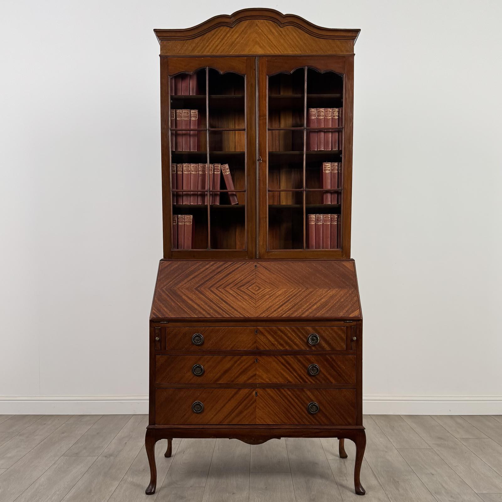 Antique 20th century bureau bookcase in mahogany, a very attractive and highly desirable piece combining elegance with practical storage.