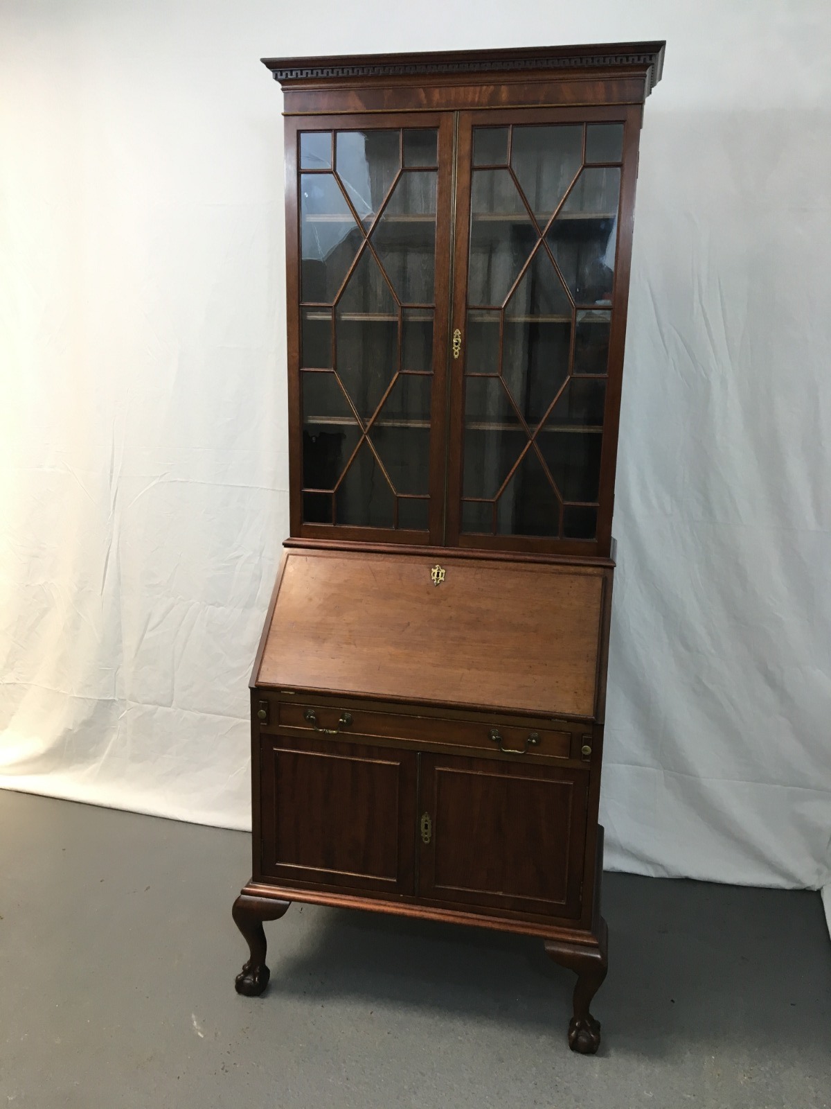 Antique 20th Century Bureau Bookcase with Astral Glazed Top Drawers & Cupboard