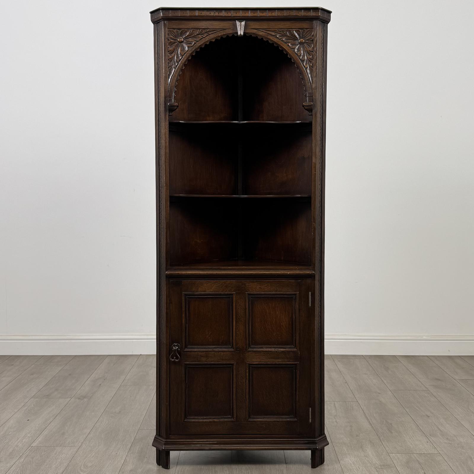 Antique 20th Century Carved Oak Corner Cabinet