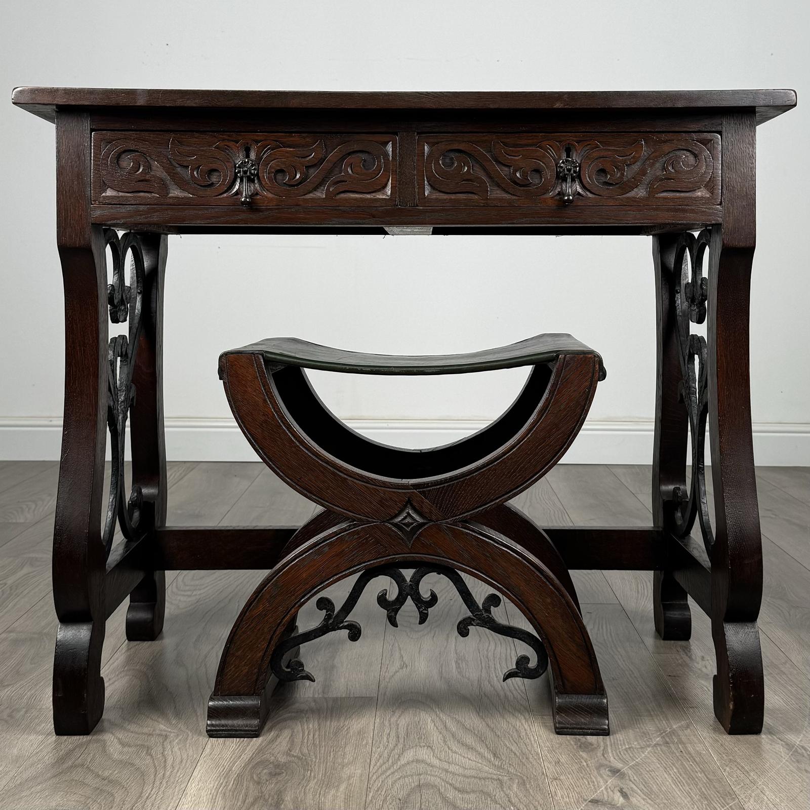 Antique 20th Century Carved Oak Writing Table with Stool (1 of 15)