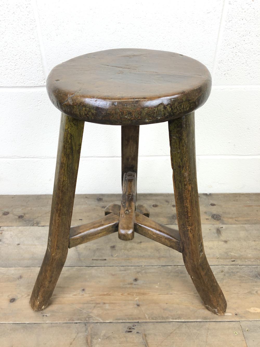 Antique 20th Century Chinese Elm Three Leg Stool