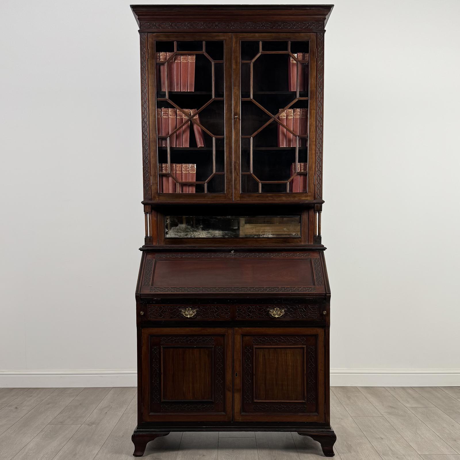 Antique 20th Century Chippendale Style Bureau Bookcase
