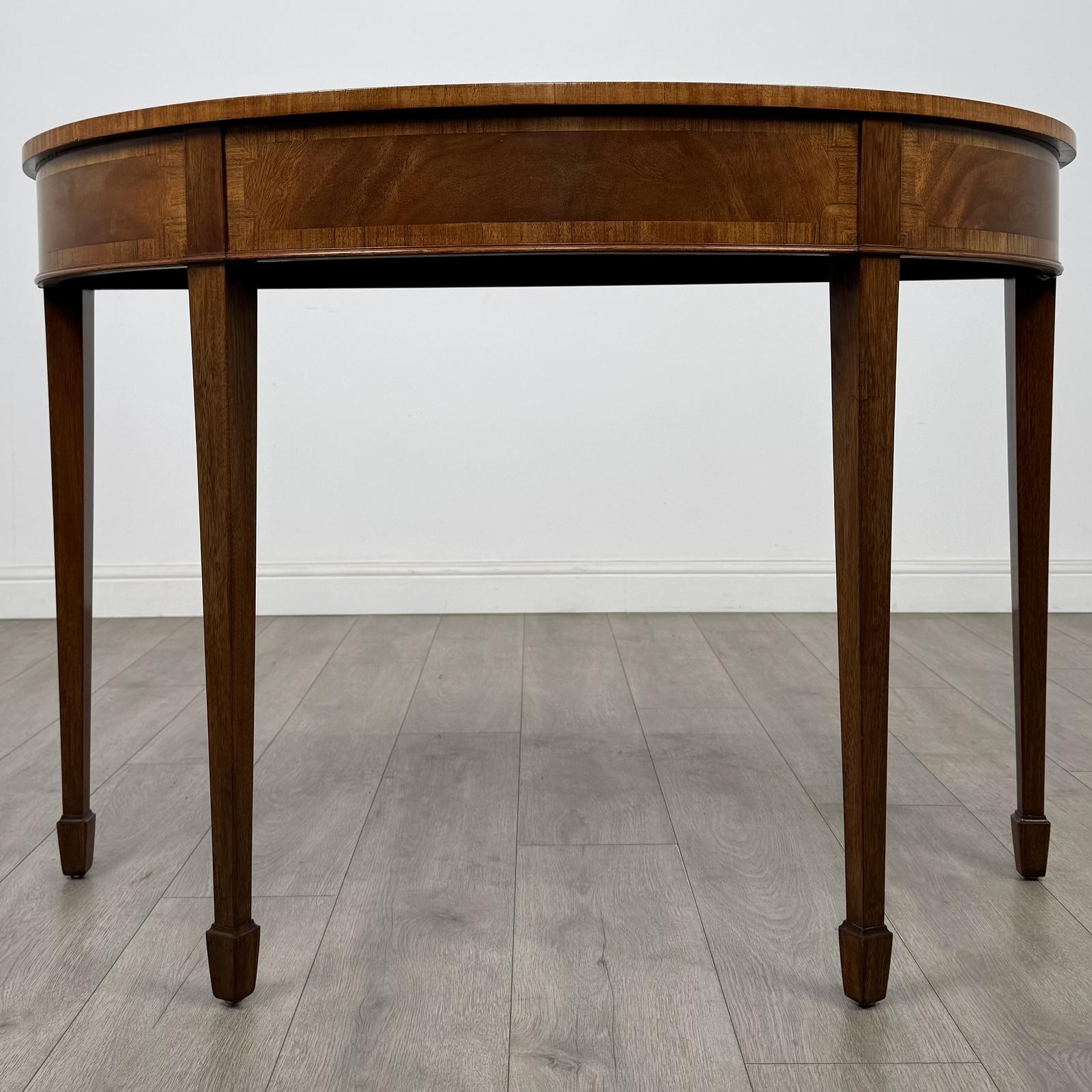 Antique 20th century demi-lune side table in mahogany, a very well made and good quality example with elegant proportions and refined detailing. The table features a classic demi-lune shape, making it ideal for positioning against a wall or in a hallway setting.