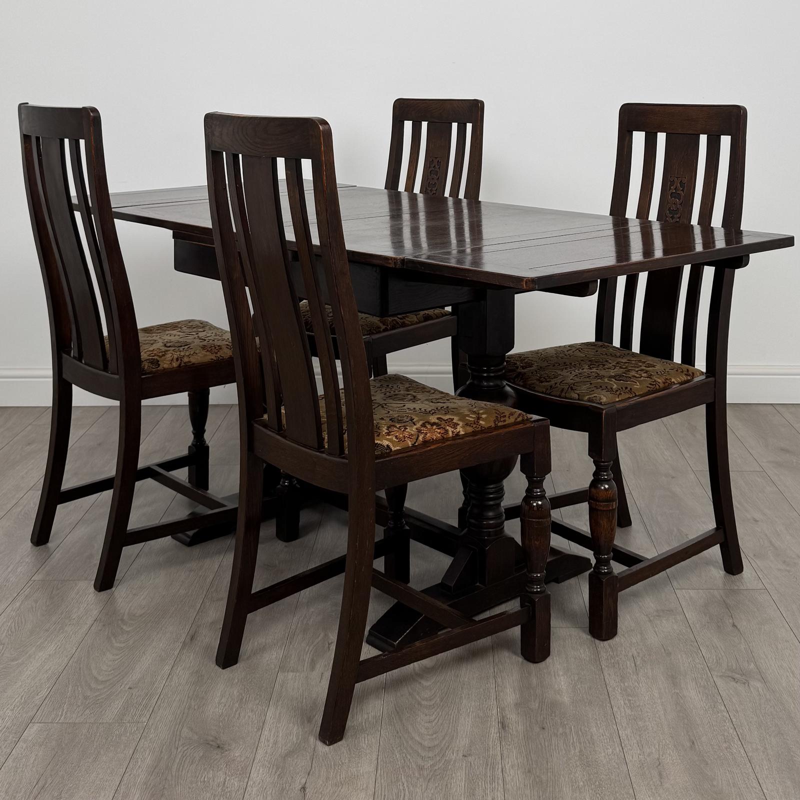 This Antique 20th Century Dining Table With 4 Chairs In Oak is located in Worcestershire, United Kingdom