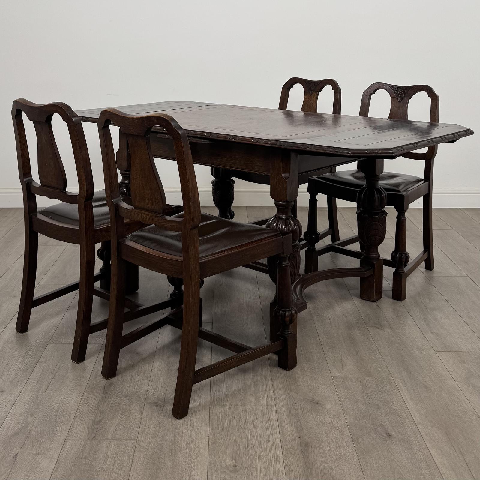 This Antique 20th Century Dining Table With 4 Dining Chairs In Oak is located in Worcestershire, United Kingdom