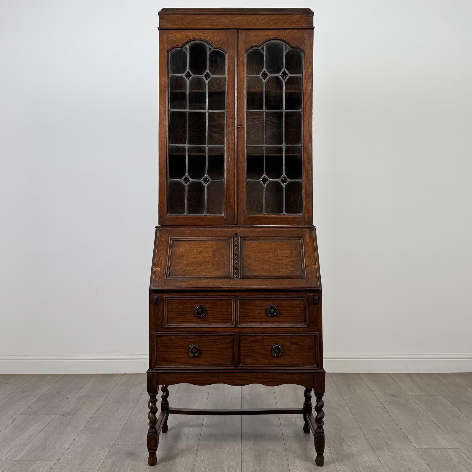 This Antique 20th Century Edwardian Bureau Bookcase In Oak is located in Worcestershire, United Kingdom
